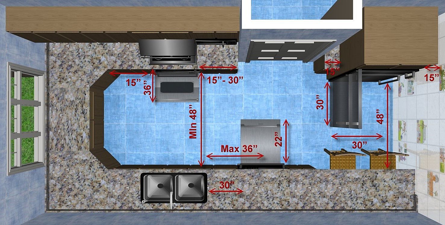 • Learn about the necessary and minimum dimensions and clearances for a kitchen design.