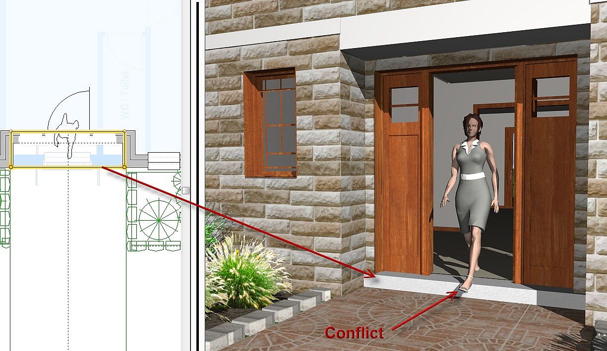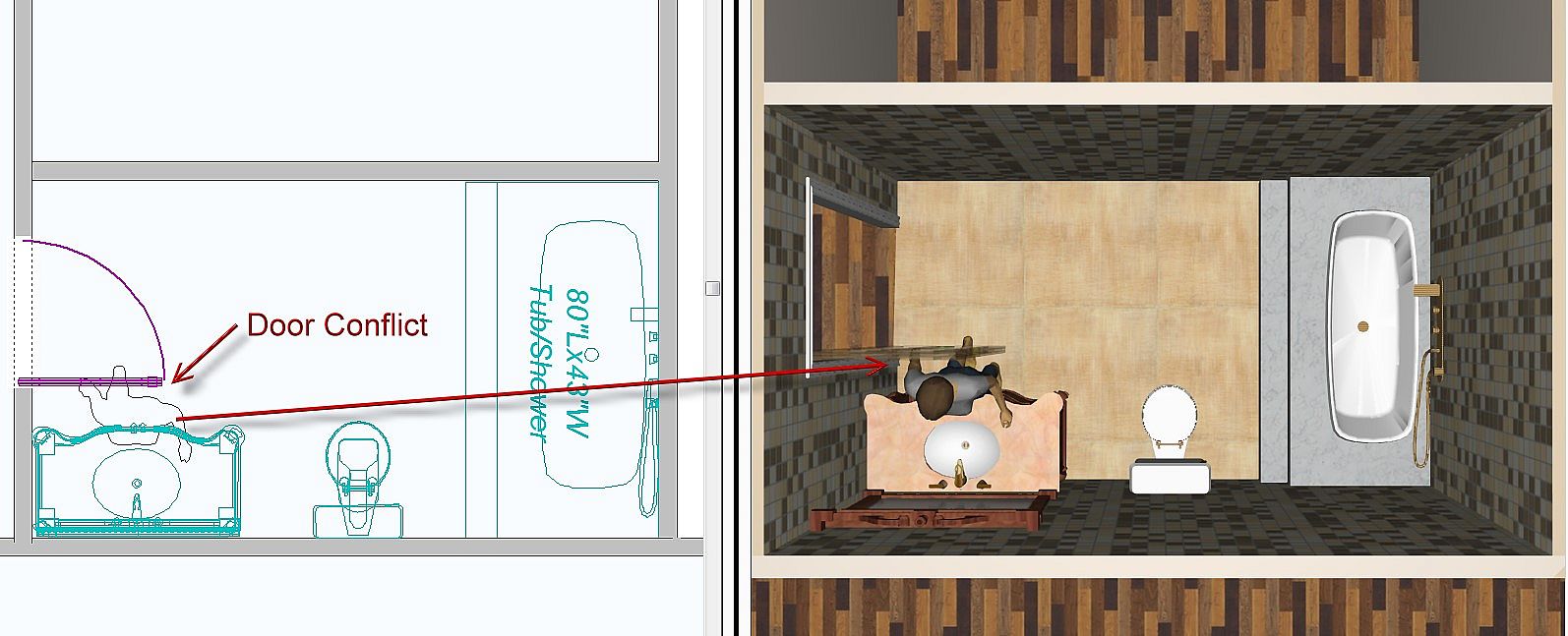 • Find and avoid conflicts with Doors, Stairs, Bathrooms, etc.