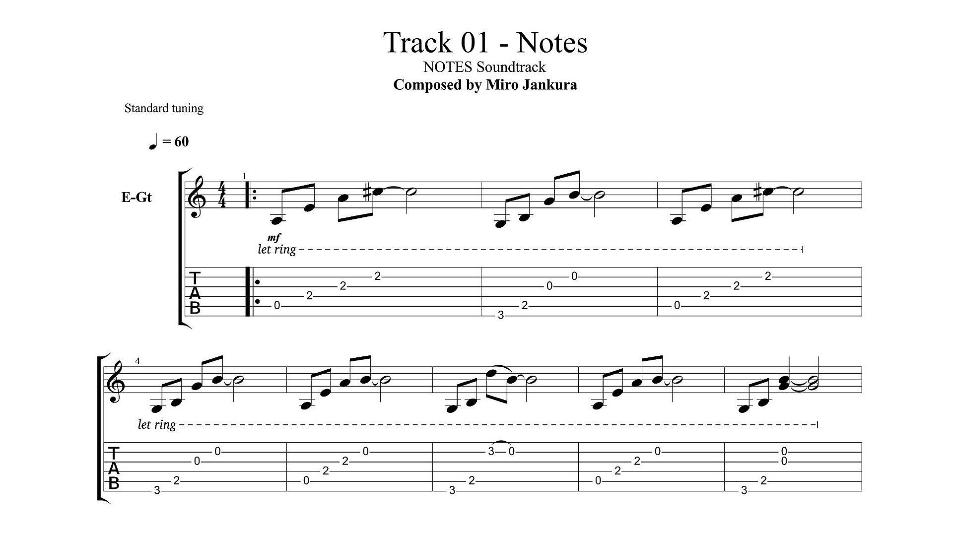 The package includes songs from the game, all in high-quality mp3 format (320 kbps). All tracks are solo guitar songs. Additionally, there are PDF files with standard music notation and guitar tablatures for every song.