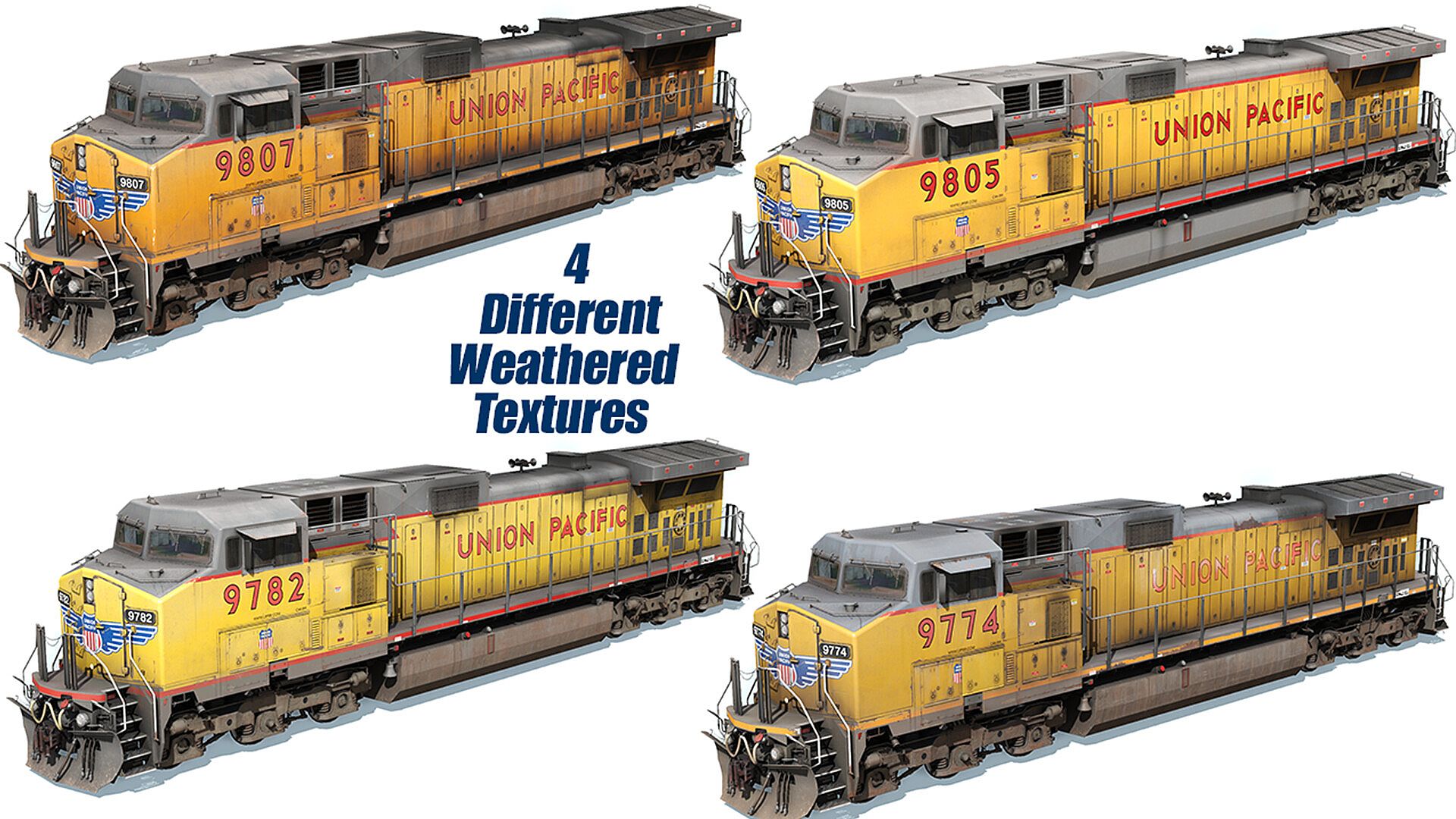 The most accurate and detailed GE Dash 9 in the Trainz Simulator market. From a highly detailed and accurate cabin made correct down the the proper seats and paper work found in the real operating cab. This is Operator Series Product has many programmed features and audio recorded off of the real equipment. This product is a representation of the CNW Dash 9 order that was repainted by UP. This model represents the years 2002 to current.