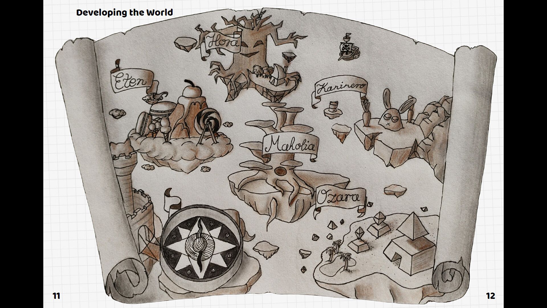 • World Development: Compare early concepts for Maholia and the Eten fairland with their final, more navigable designs Yarn Guardians Booklet.