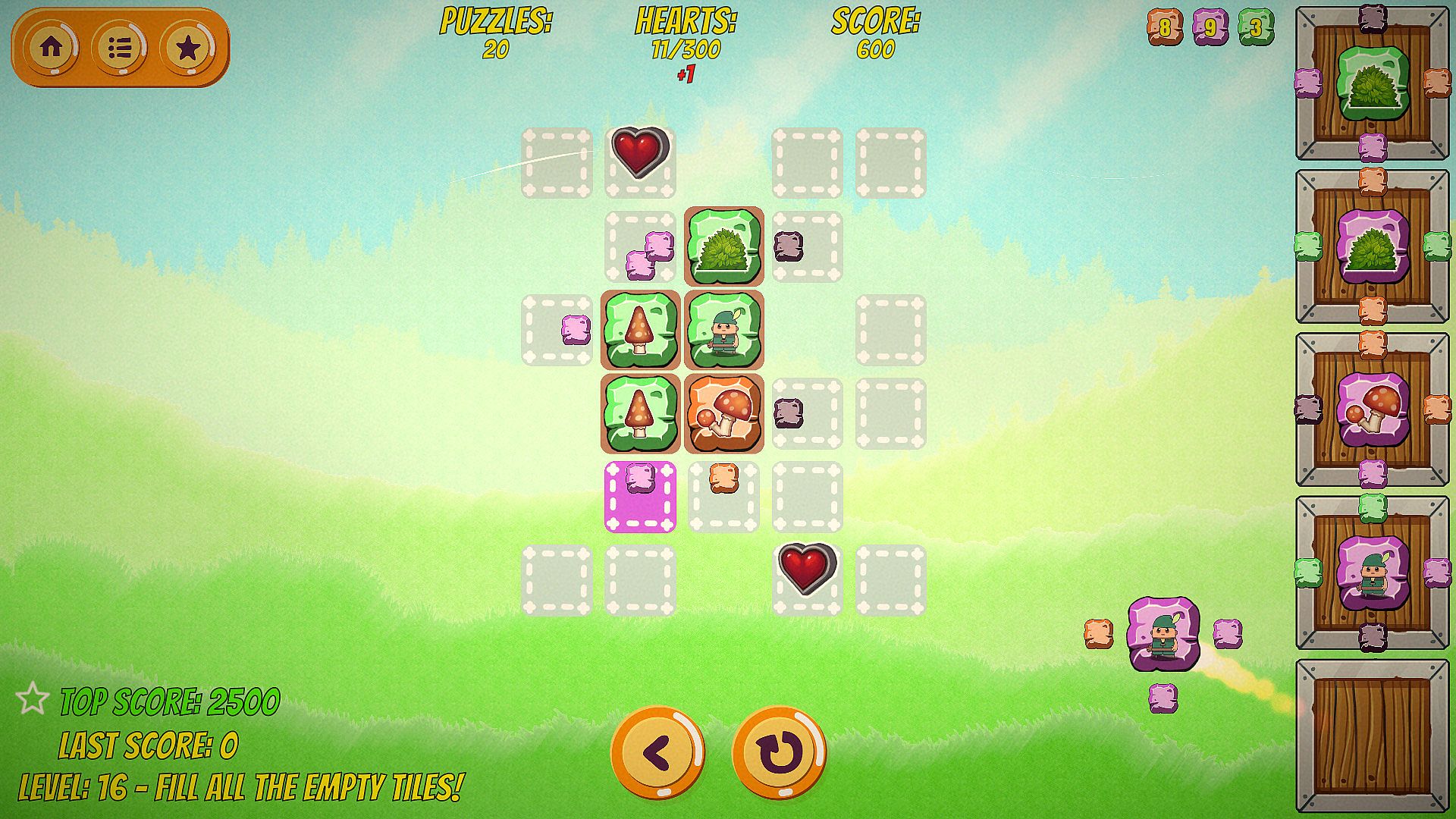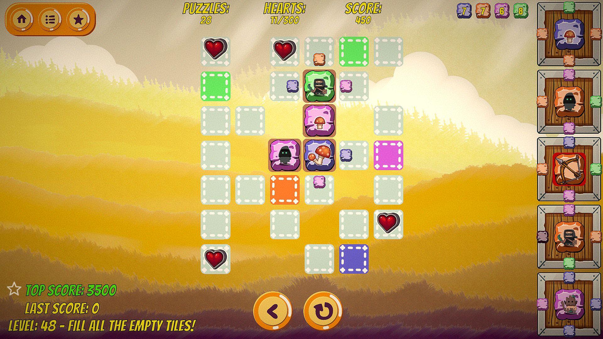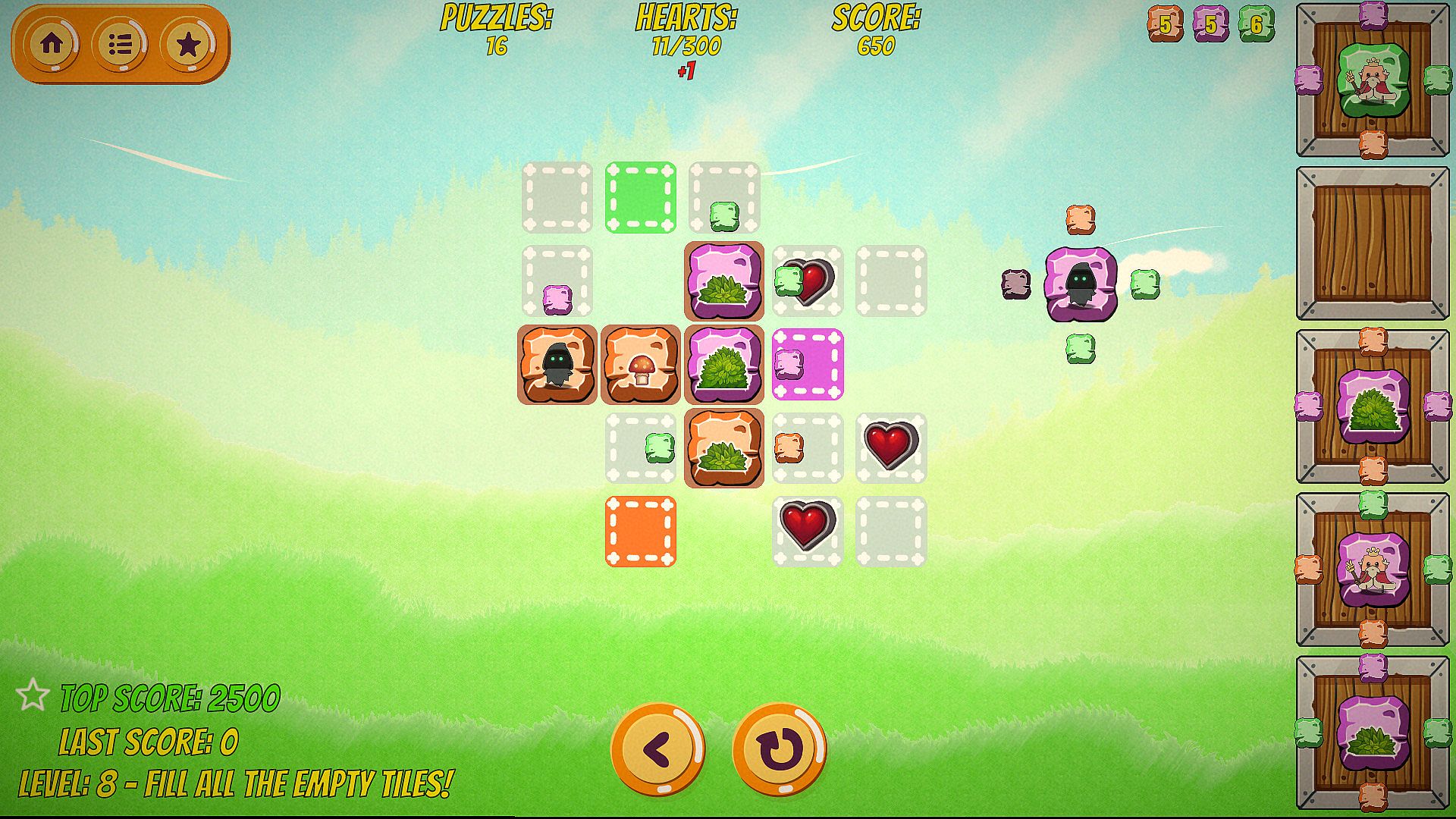 Adam The Storyteller is a difficult puzzle game. While the first levels are super easy to complete, further in the game it requires long-term planning of used puzzles. Every few levels new power-up puzzles are introduced along with new game mechanics to rise difficulty and challenge players. The game requires a lot of skills to collect all the secrets and beat all the high scores.