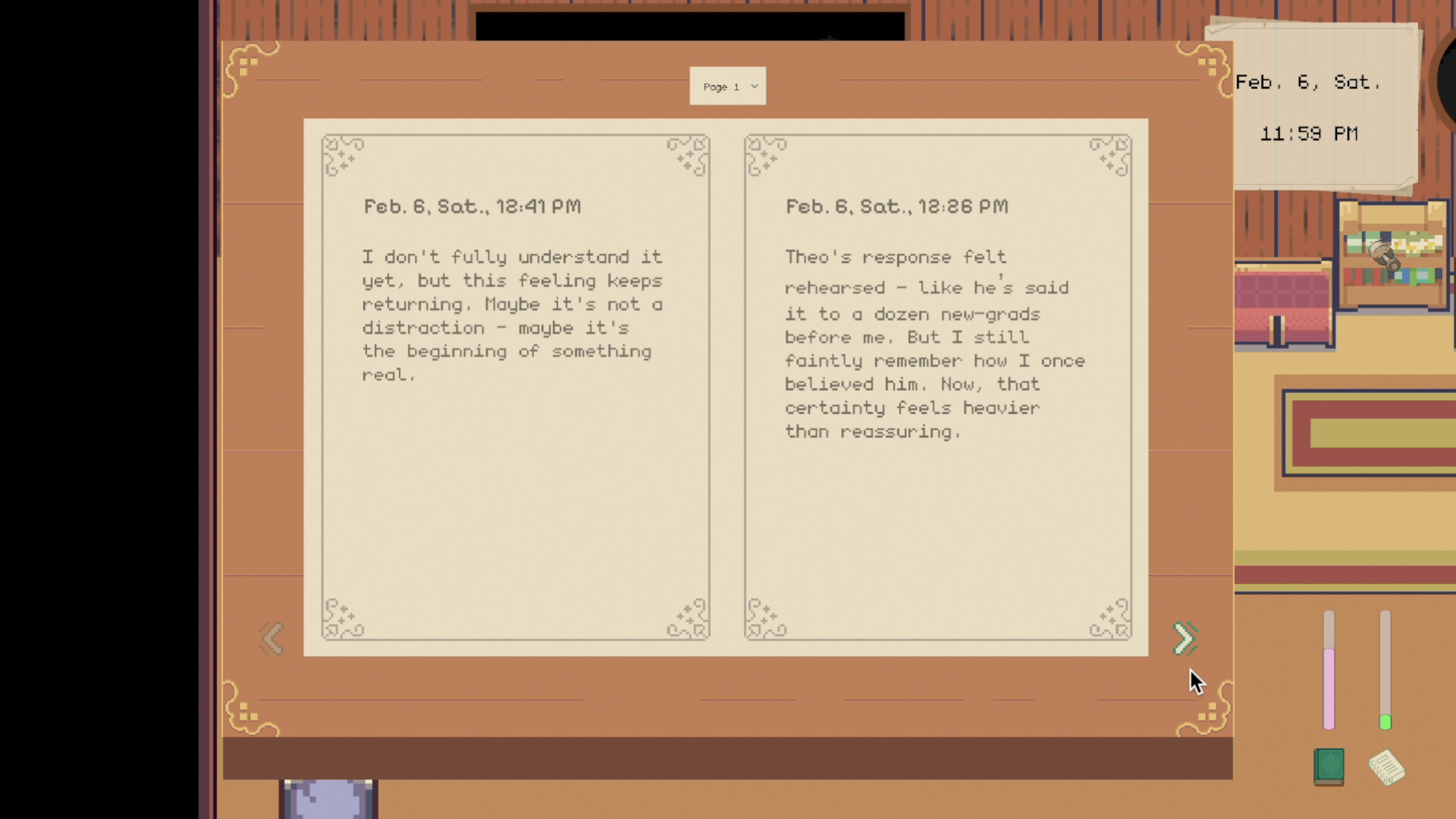 As Momo, you'll navigate a year of choices that shape her career, relationships, and ultimately, herself. Through dynamic dialogues, shifting affinities, and quiet moments with characters who reflect different worldviews, you’ll uncover the beliefs - internal and external - that shape Momo’s life path.