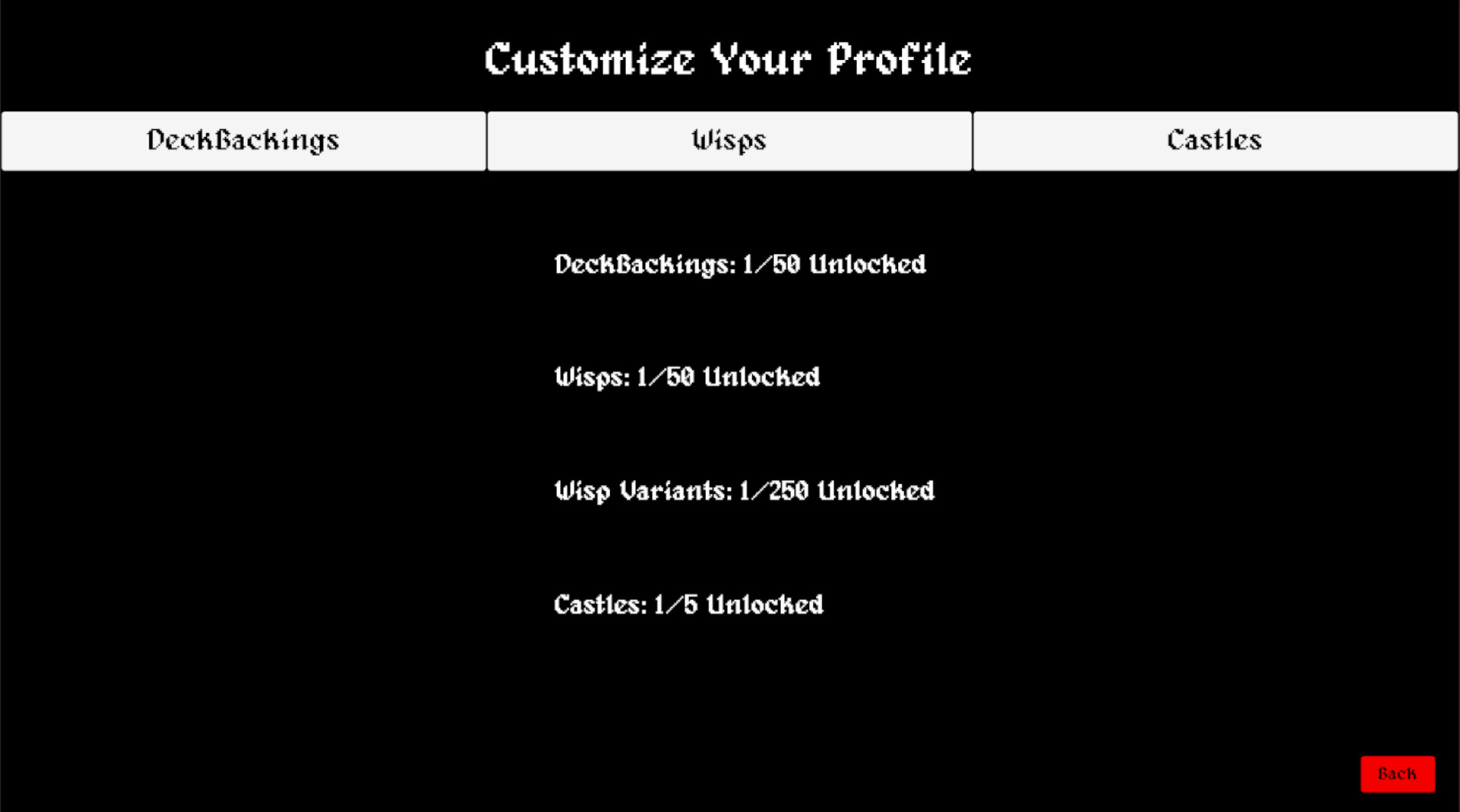 • Customization & Unlockables – Collect deck backings, castle skins, and wisp companions tied to your progress and playstyle.