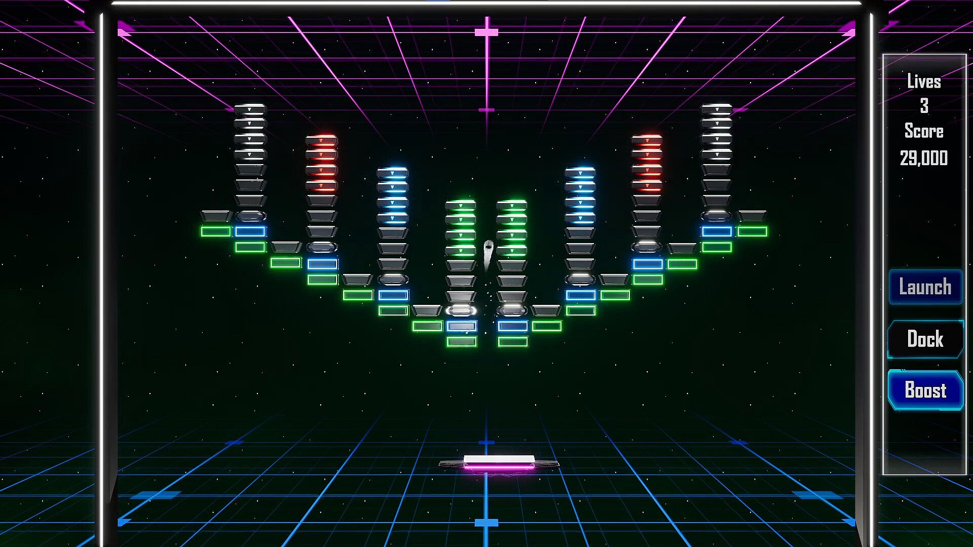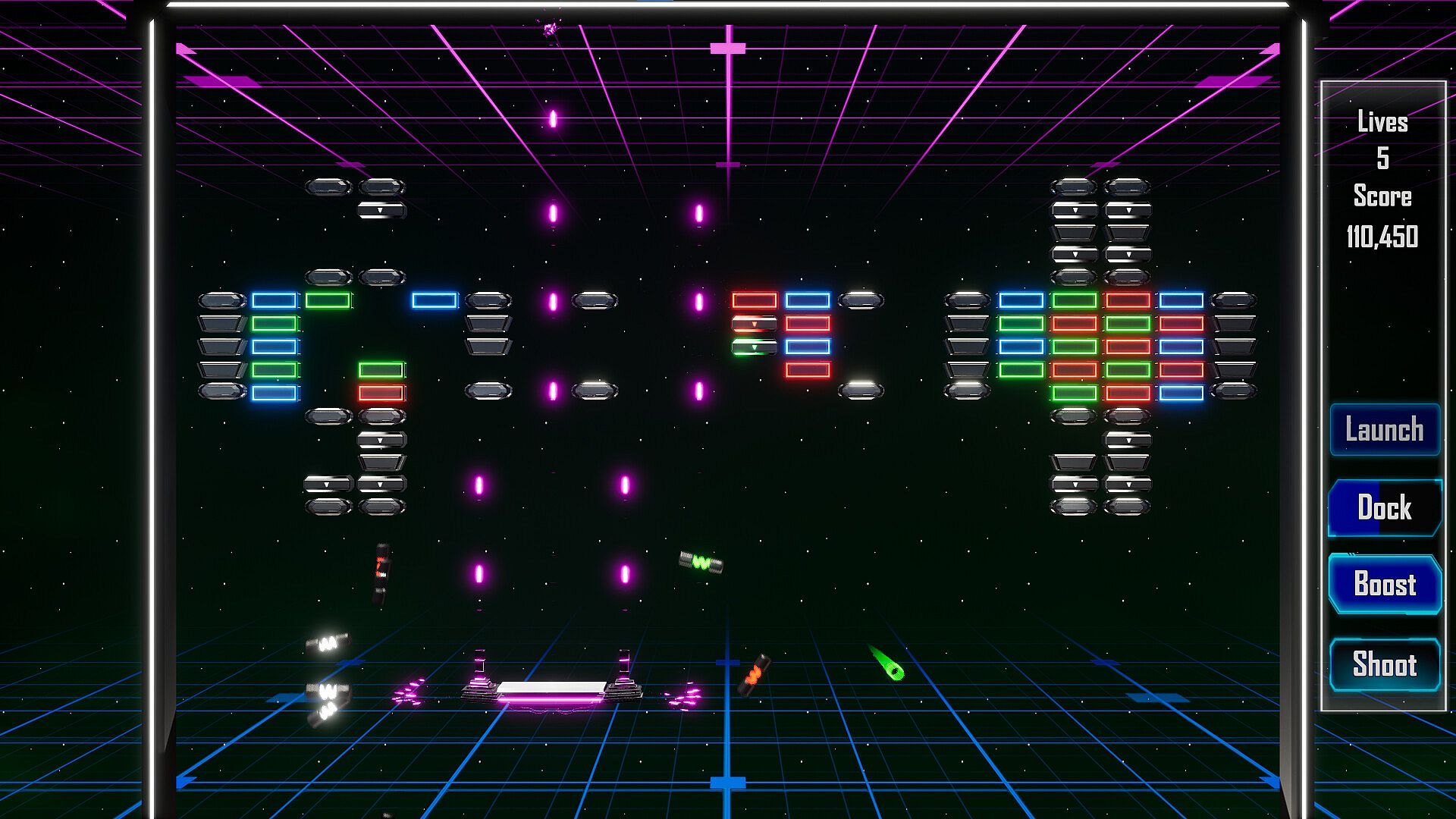 A brick-breaking style game with lots of VFX, colors and inspired on retrowave style