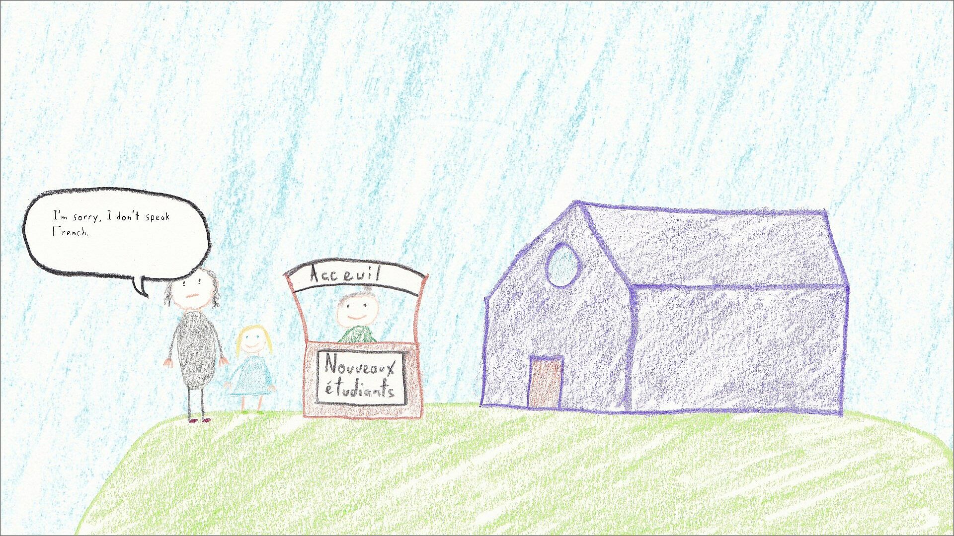 Camille and Laura blends the childhood drawings of character Camille with the thoughts and choices of her mother, Laura, shining a light on their daily routine as they encounter their first week of school.