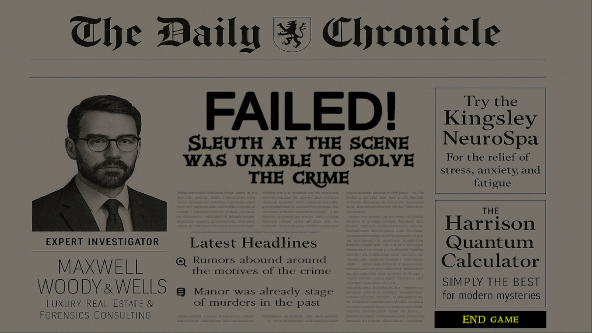 • Solve the Case – Secure the weapon, identify the culprit, and make the arrest before the police arrives