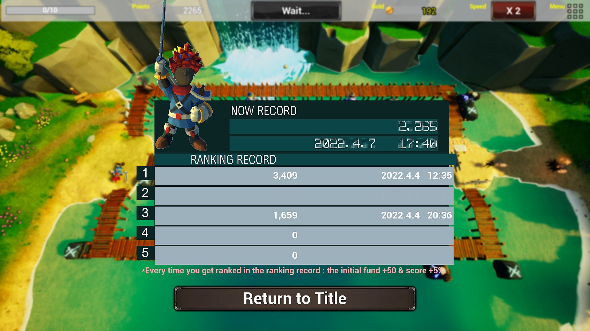 Every time you renew your highest score, then your score and military funds go up.
