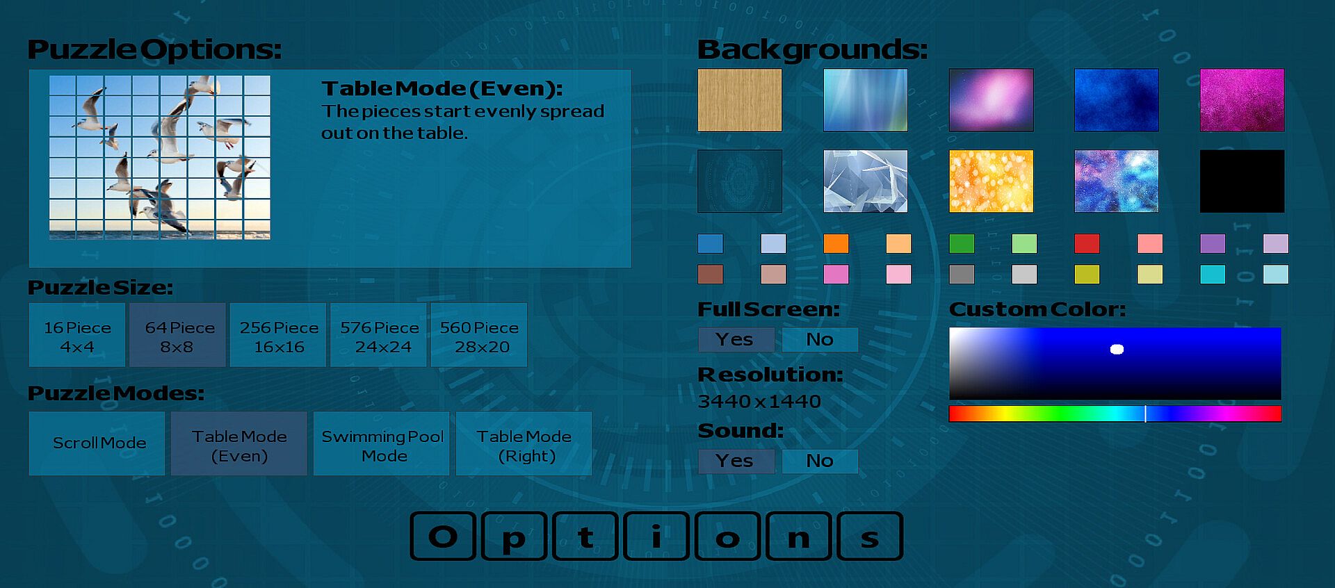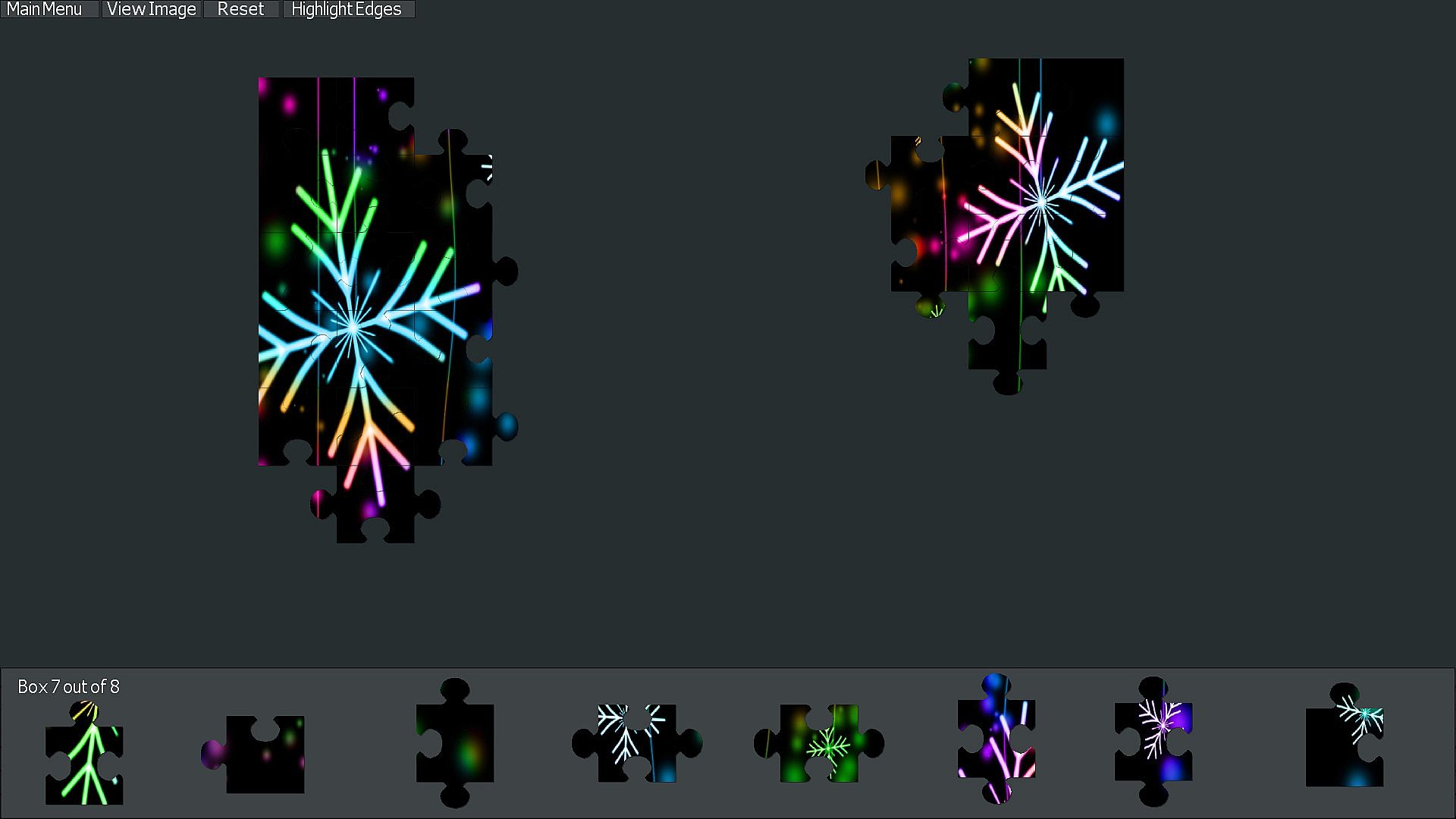 Swimming Pool Mode - This mode places the starting positions of the pieces into two “pools” of water located on the left and right sides of the screen. The pieces will float around allowing for the remainder of the screen to be used to complete the puzzle.