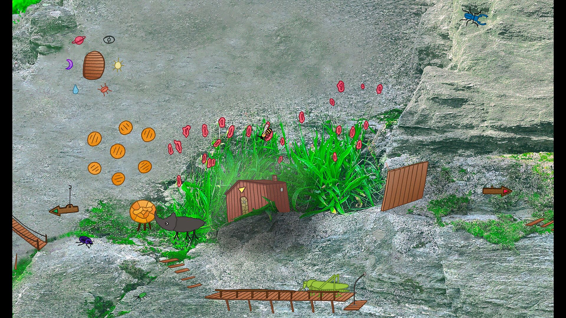 • Meet a whole cast of insects (and spiders) in a mildly challenging short adventure