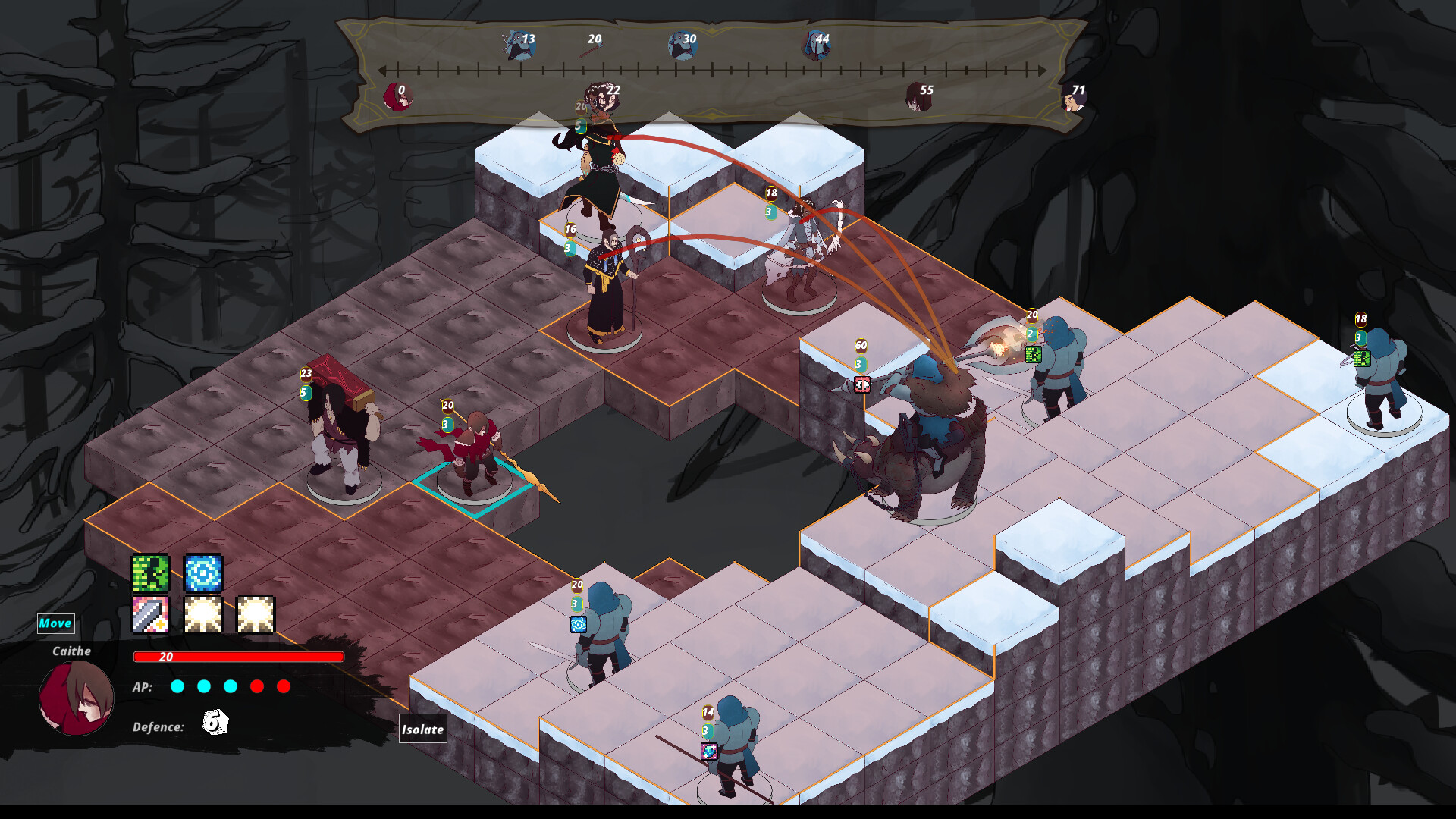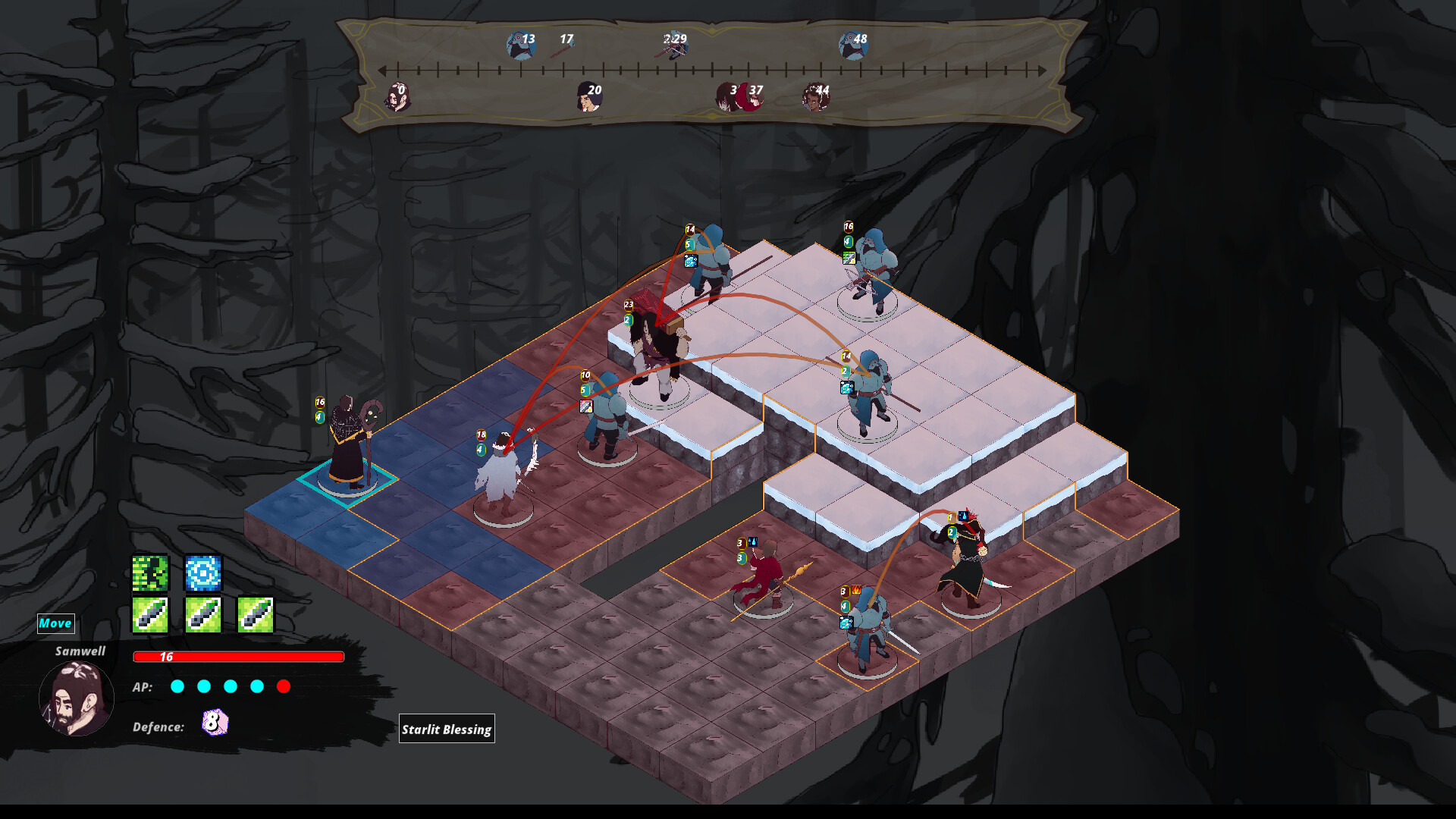 Your enemy will almost always outnumber and outgun your party. You have a single advantage - Foresight. The enemy is predictable, and you can see most of their turn in advance. Where they will move, what action they will use, and what tiles they threaten are laid bare. With skilled play, you can navigate the full game without ever getting hit.