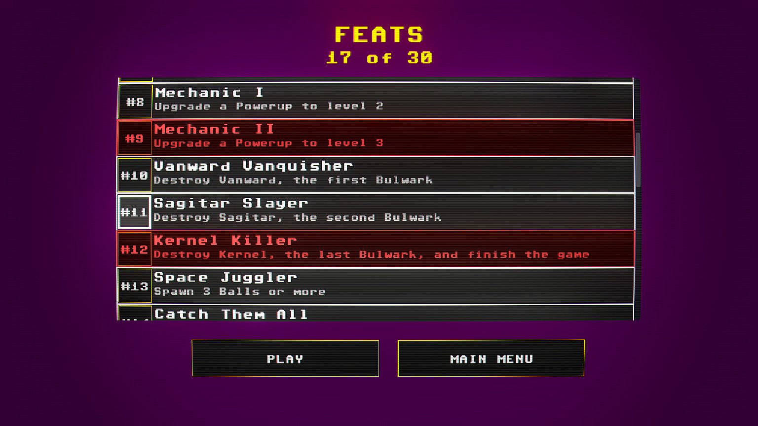 - 9 powerups which can be upgraded, including Kinetic Gun, Homing Missiles, Electric Ball, Wall Lasers...