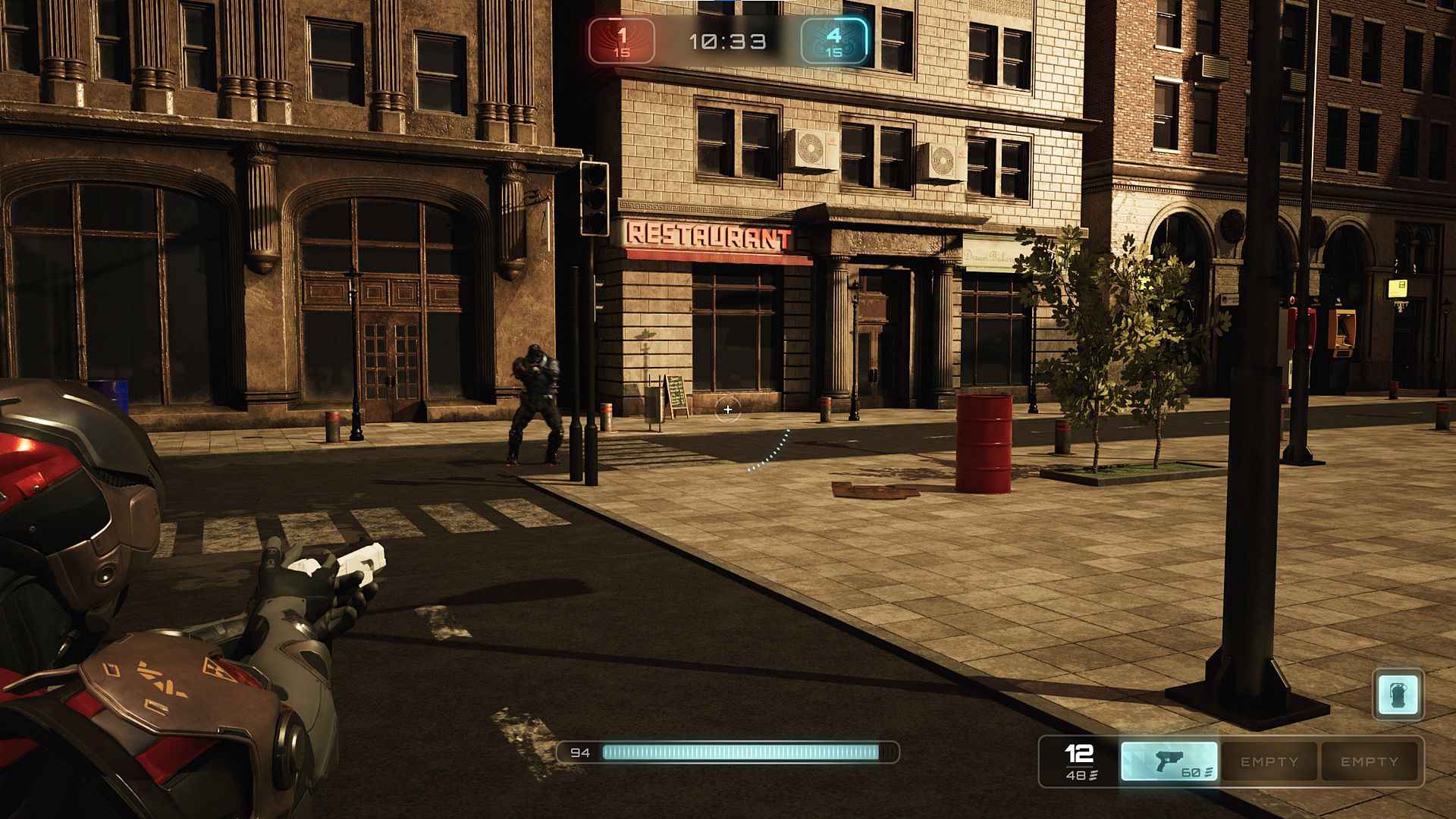 Free to play with multiple game modes including quick play mode, host a match and search for a hosted match online. The game modes include elimination mode where the objective is to find an eliminate enough enemies. A second game mode is included where the object is to secure the control points with your team mates in order to increase your score and win. Also included is capture the flag and last player standing .