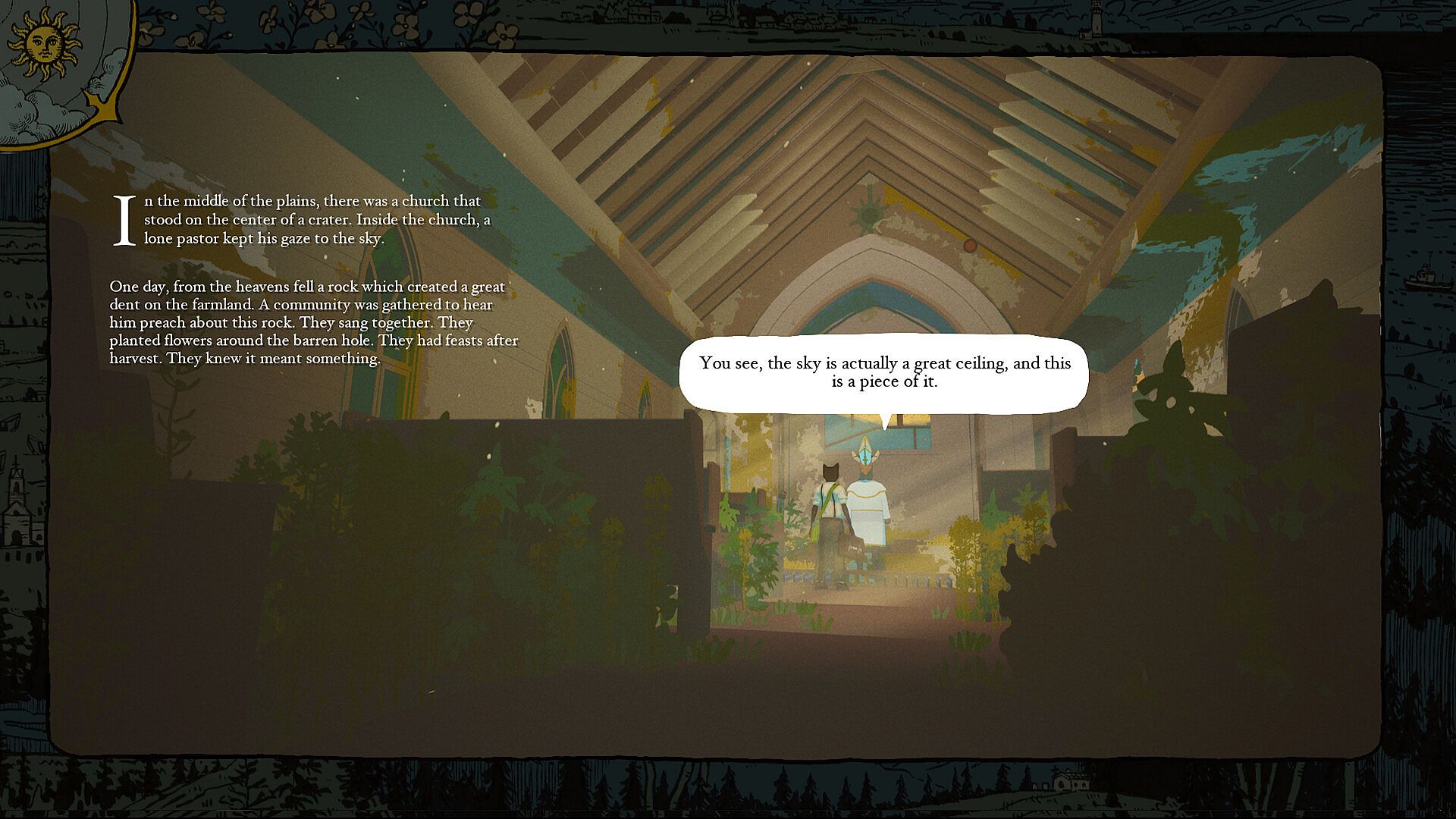 The game is a narrative walking sim that tells its story via storybook-esque compositions.