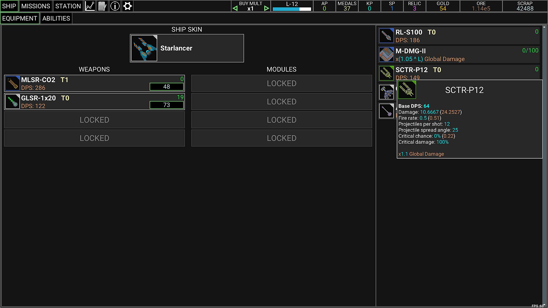 • Ship with 4 weapon, 4 module and 1 skin slots