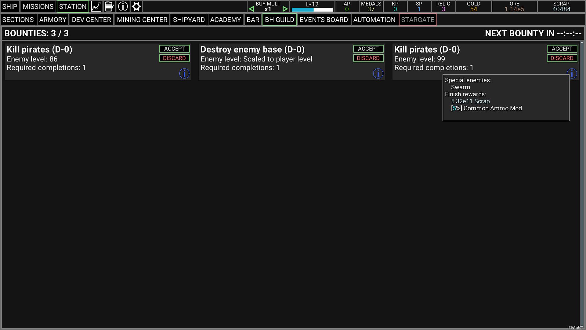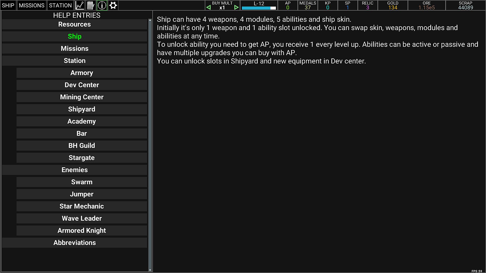 • Station with multiple sections: armory, bar, shipyard, dev center, mining center, bounty hunter guild, stargate, automation, academy...
