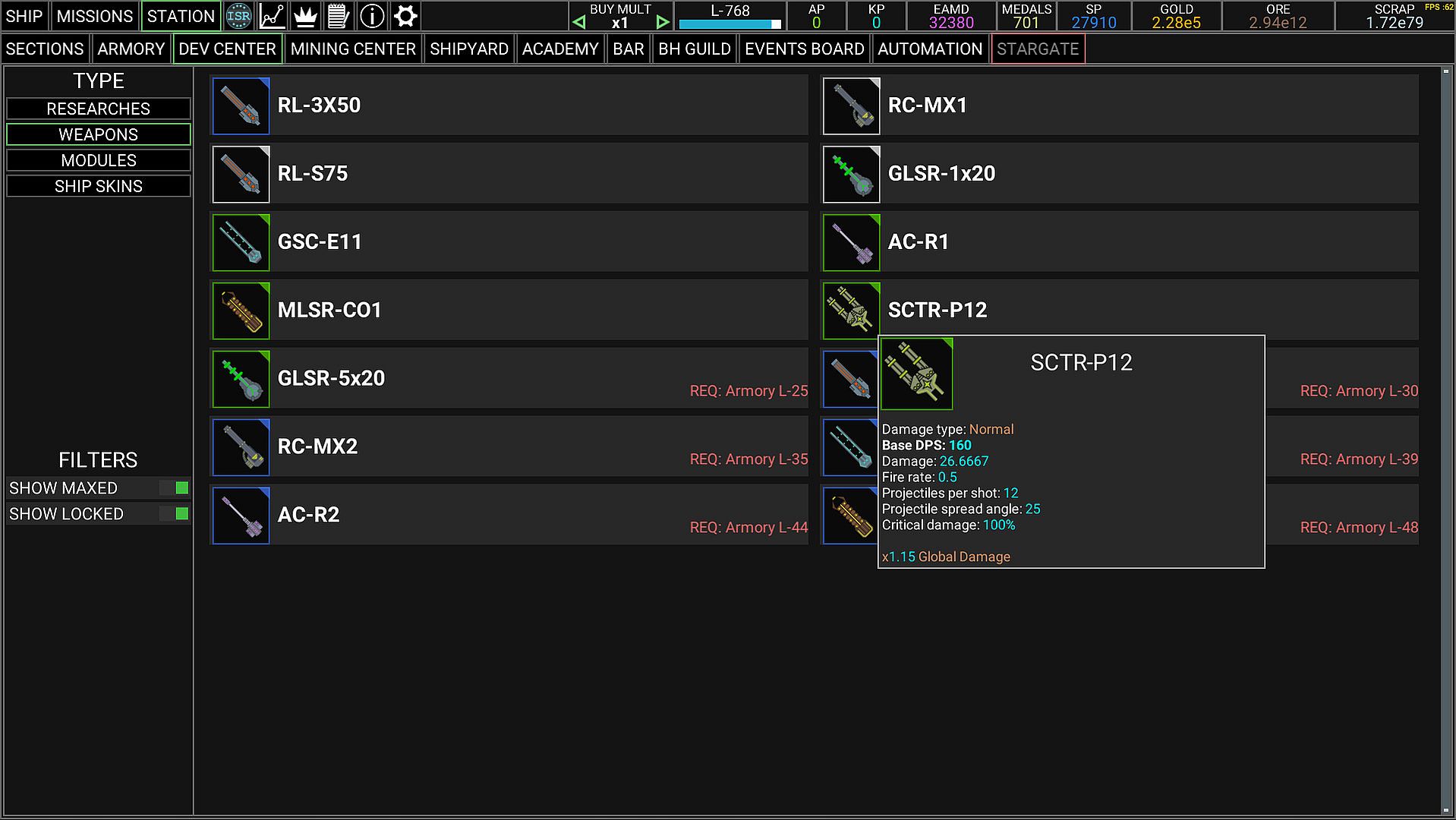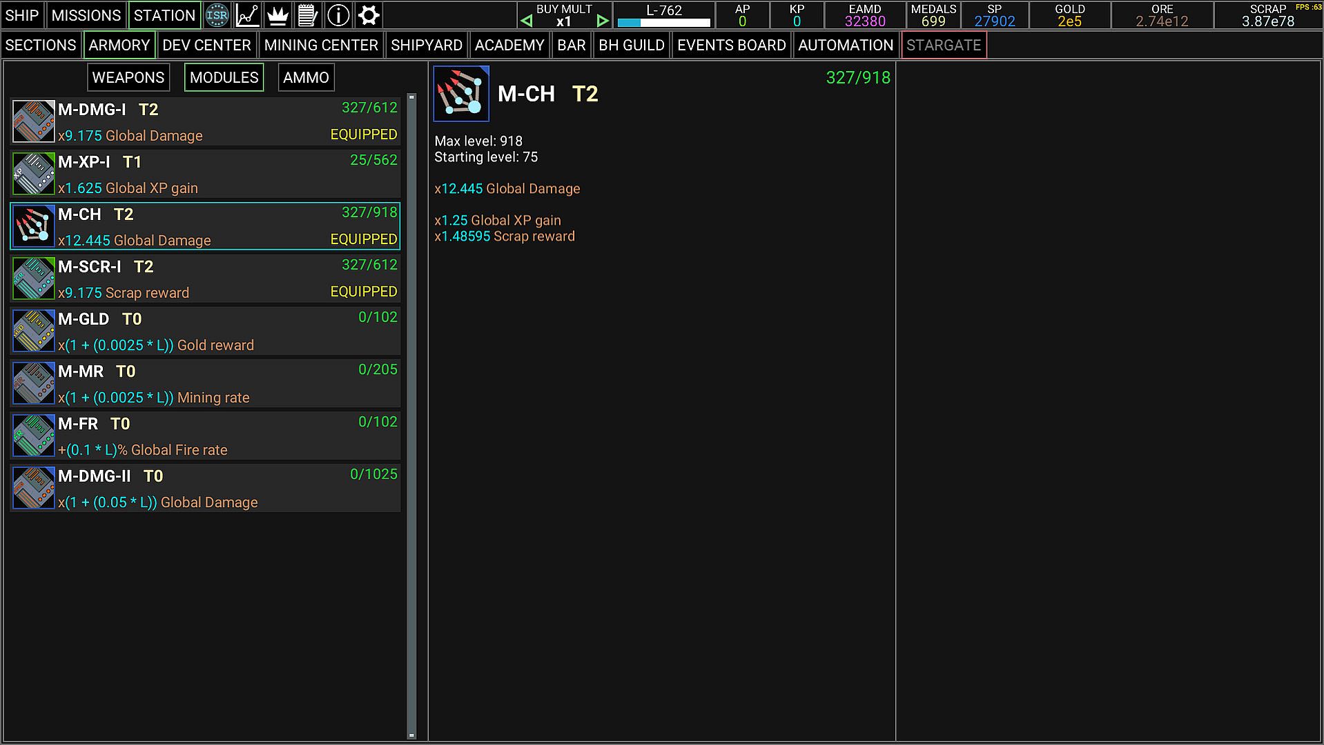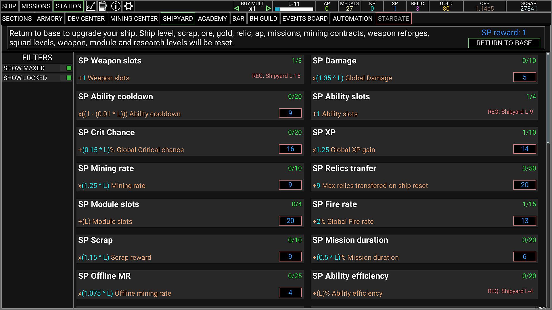 • Stargate - build a stargate to access 2nd level of resets and get access to alien technology (main ability improvements/modifiers, unique researches, unique weaponry/modules/ammo mods and skins).