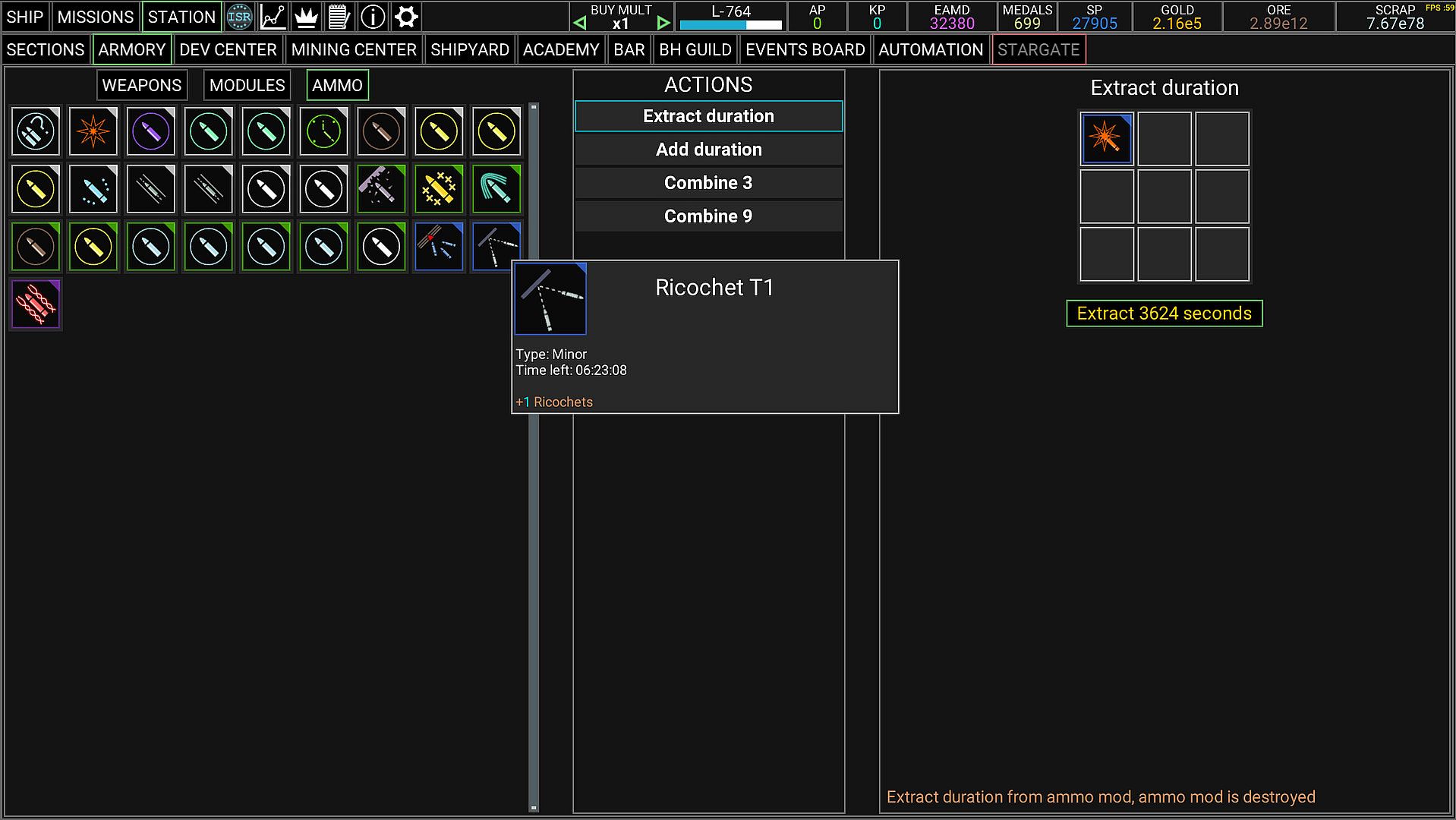 • Ammo modificators workshop: extract or add duration, combine to get new one
