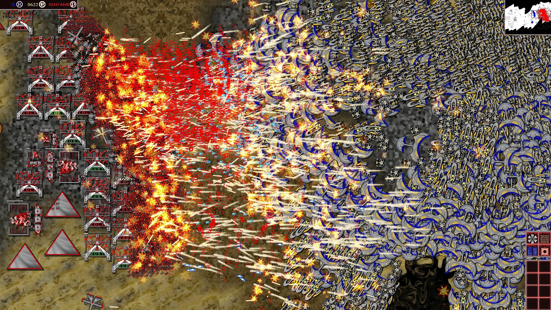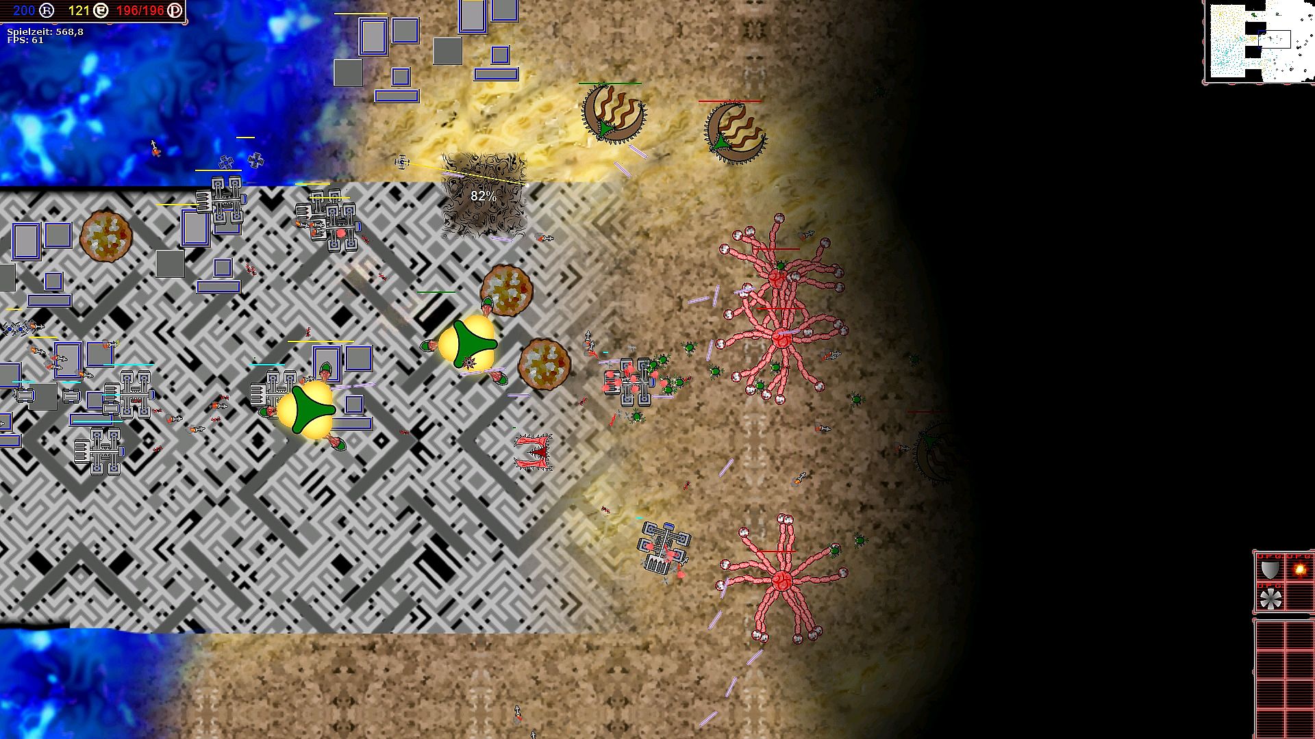 In this game you pick one of 6 factions and battle in typical RTS-style your opponents. But Intruder Alert isn't like other strategy games. While in other games you have unit limits, Intruder Alert has no limits except your pc power. Moreover resources are drain realistically and your population grows exponential. Besides all factions differ greatly. For example the Ixir can transform all their buildings into vehicles and backwards and the Mercoss use only drones for all their economic jobs.