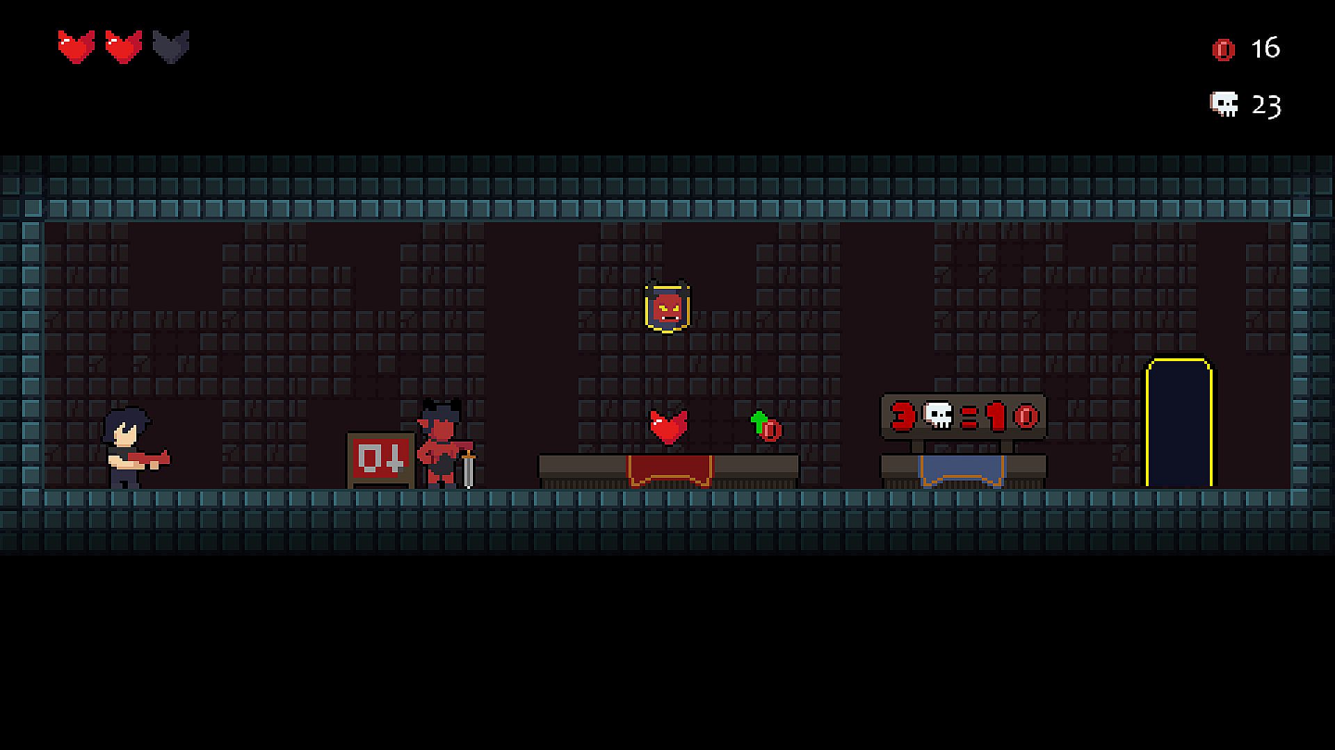 Battle through 5 levels of the Hellevator against multiple enemy types and 5 bosses. You will collect skulls during your runs used to buy items in the shops. You will also collect coins to spend on upgrades and social skill improvements while staying at the hotel.聽