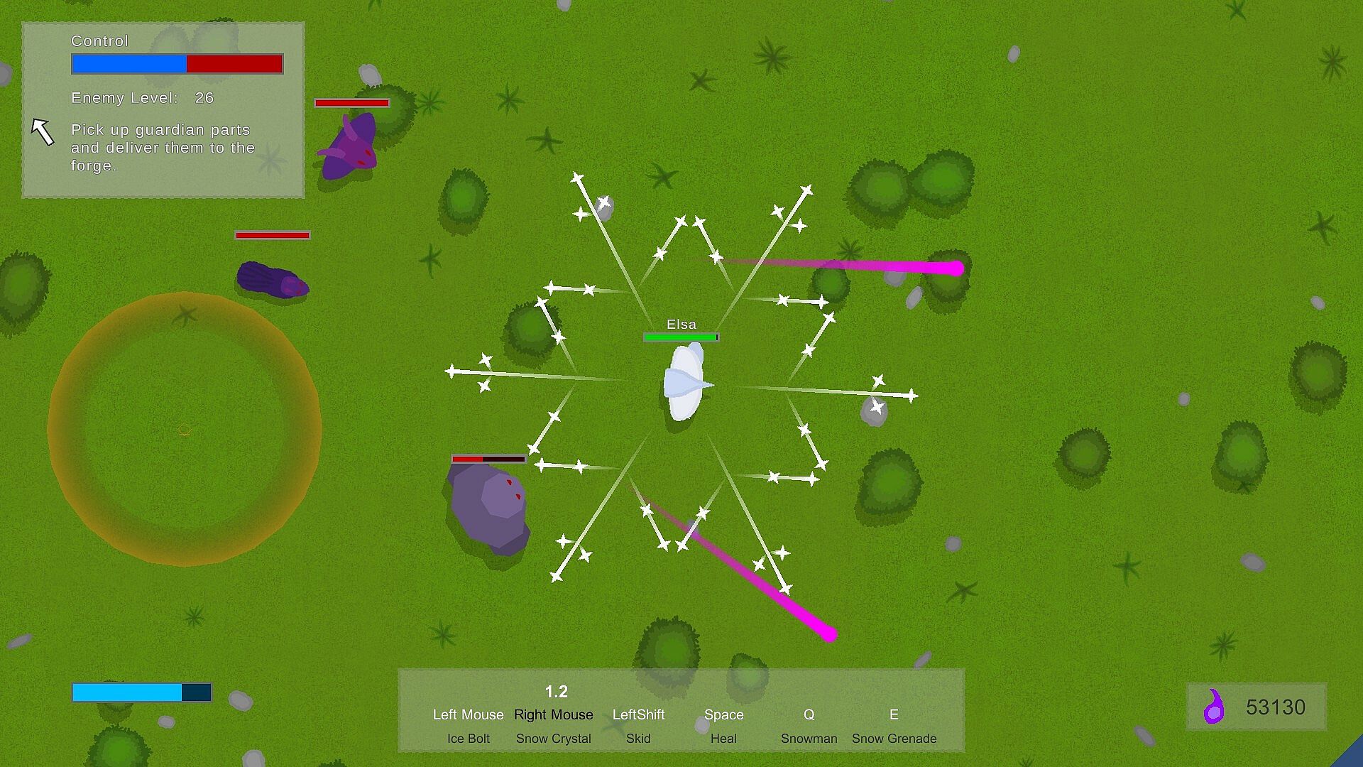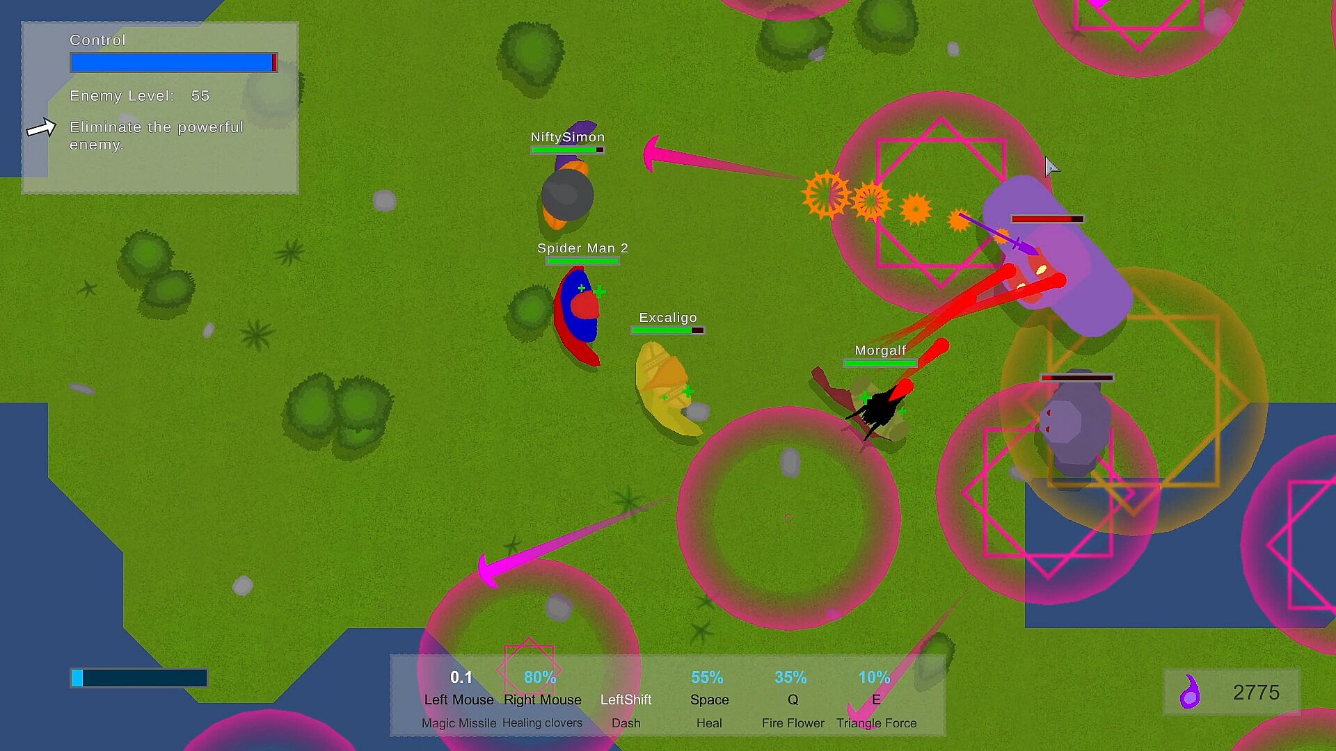 Become a mage and fight the corrupted monsters threatening the peace of Osmea. Invent your own spells ranging from multi-stage projectiles to area effects or healing and speed buffing spells.