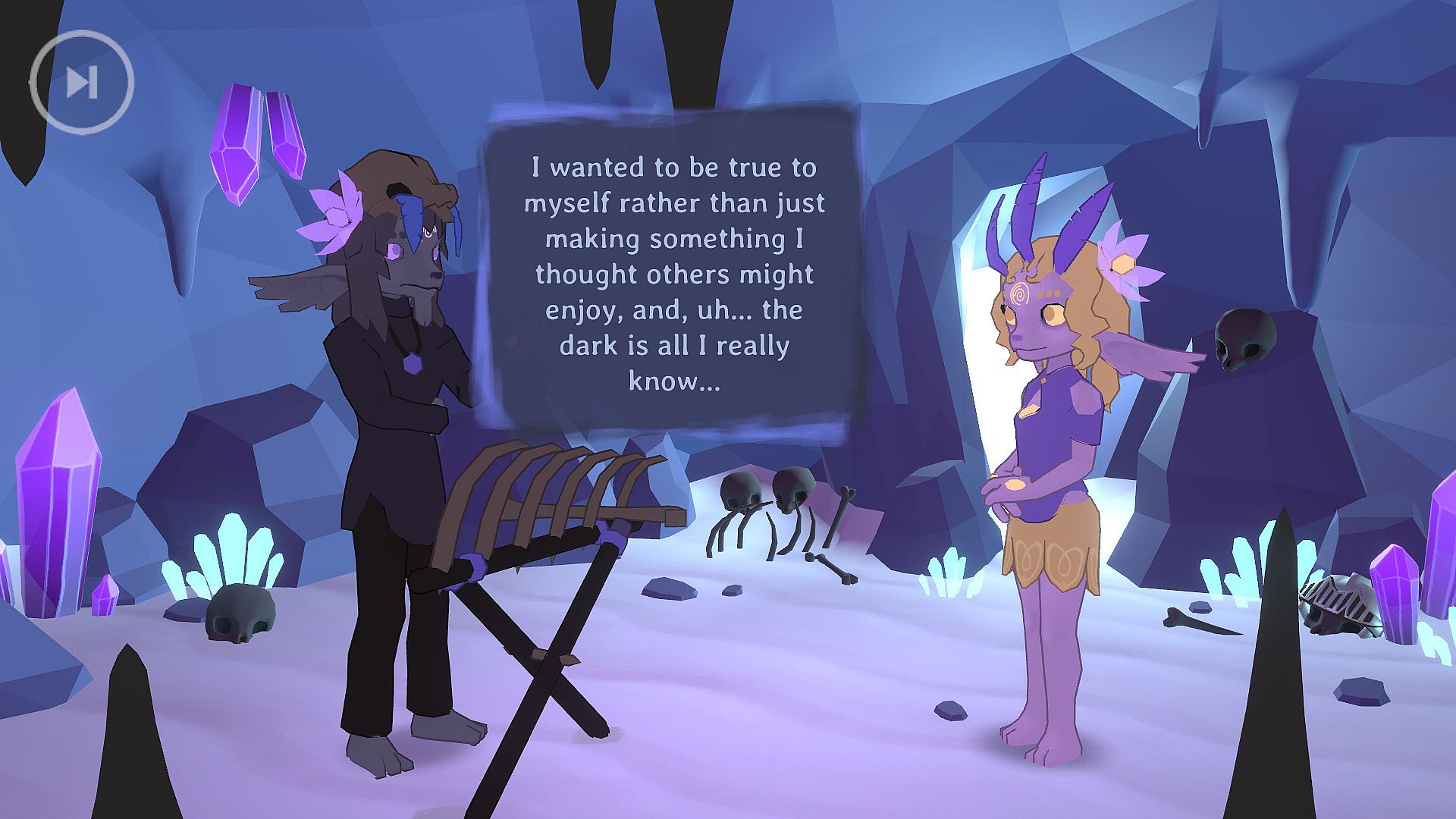 The story follows Memody, a 'sindrel' who's just awoken into life. Sindrels naturally live for just six days before a fatal winter claims them, but the opportunity for prolonged life presents itself to her. Sindrels have symbiotic creatures in their heads - daemons - which provide guidance through life, but Memody's is 'defective', poisoning her thoughts with constant abuse. Would life eternal be desirable if it was shared with an inescapable inner critic? By sharing songs with other sindrels and understanding their perspectives on life's value, she might build connections with new friends - and new outlooks - whose light outweighs the dark.