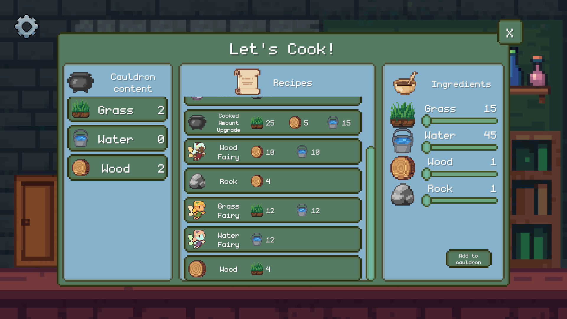 Speed up your fairies, unlock more efficient recipes and automate your lovely fairies and your trusty cauldron