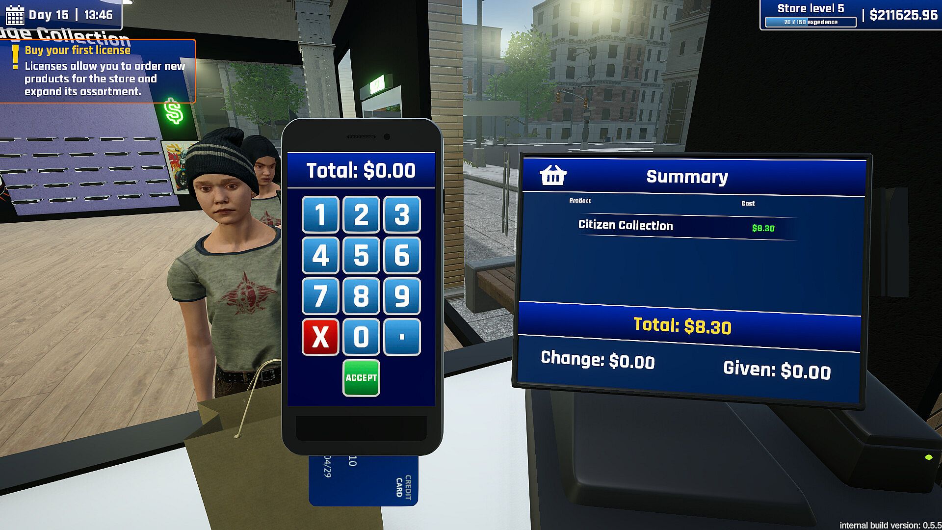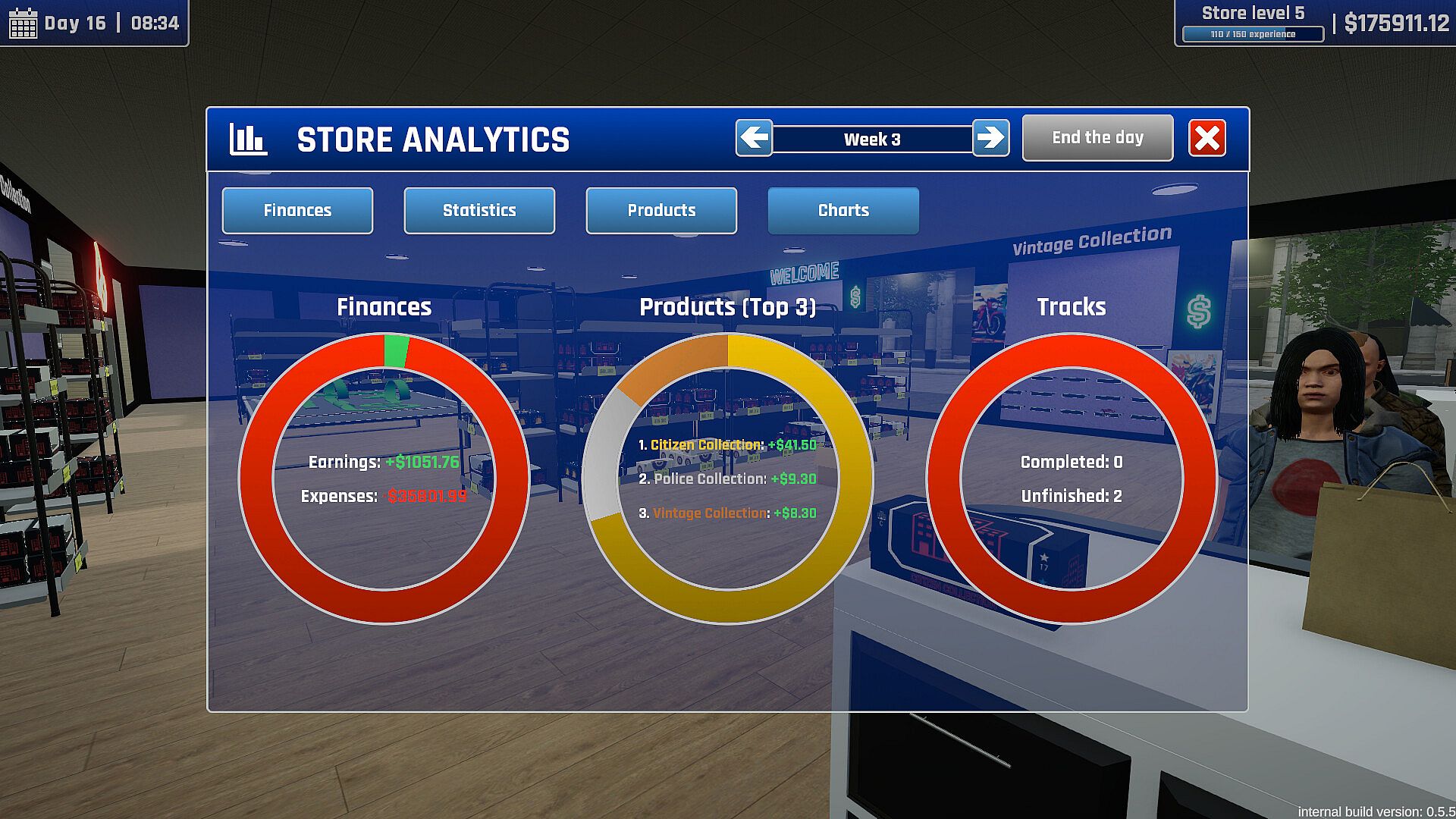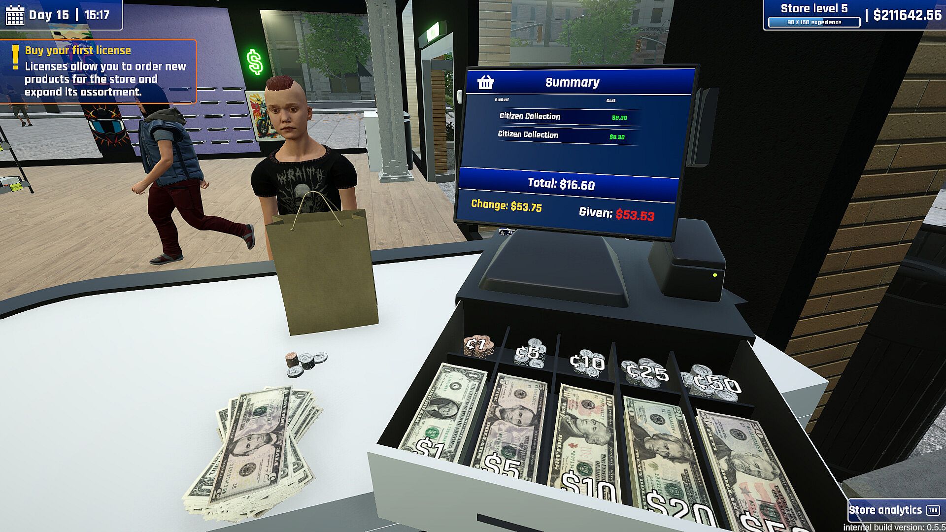 Every shop can be expanded in size, furnished, and decorated to your liking. With lots of patterns to pick from, custom paint colors, and lots of decorations like neons, posters, and arcade machines there's just no limit in expressing your personality of your establishment! Posh boutique or nerd's paradise - the choice is yours.