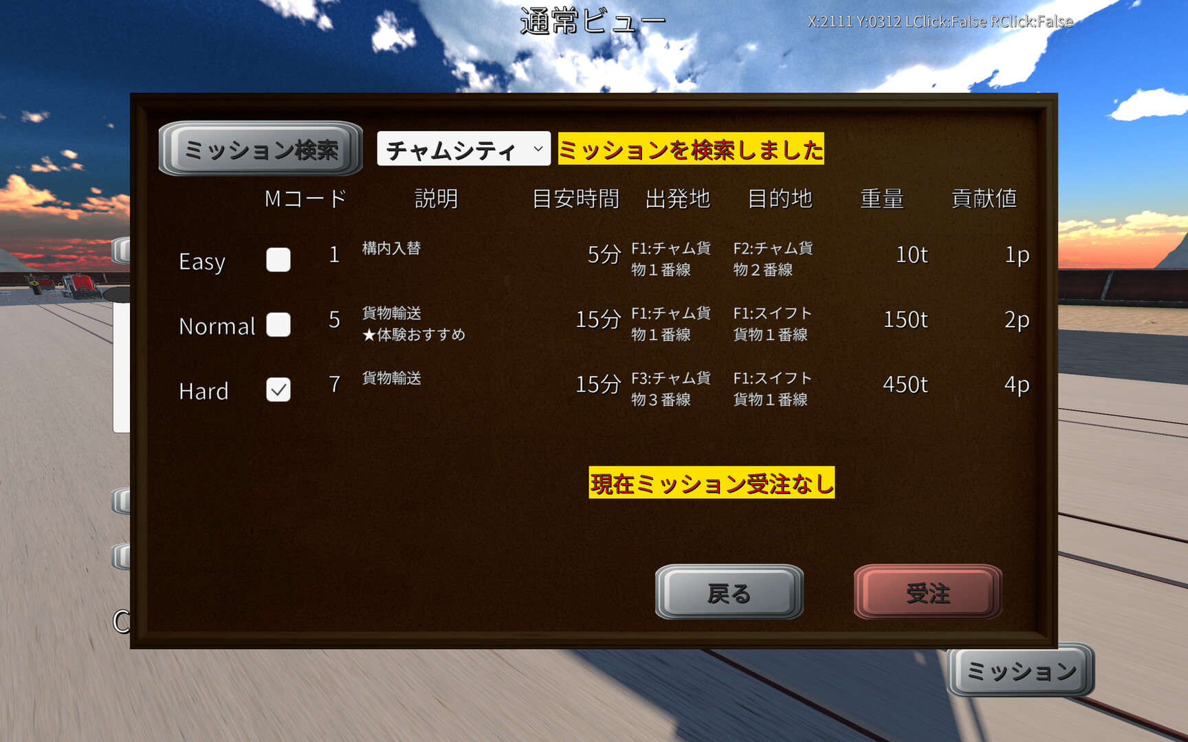 You are a train driver supporting the growth of the emerging city-state "Chamland Republic" that is developing in the mountainous region. Complete missions and contribute to the development of the country.