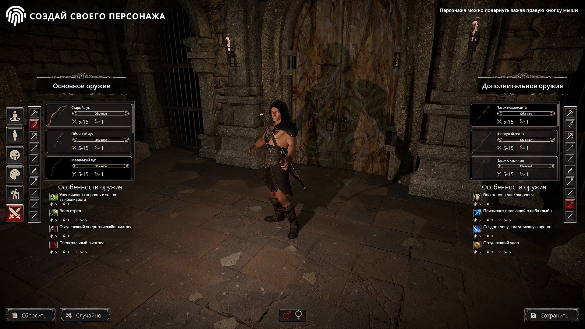 • 10 unique types of weapon: Two-handed axe, Two-handed spear, Two-handed sword, Bow, Crossbow, Dagger, Mace, Spear, Sword, Staff