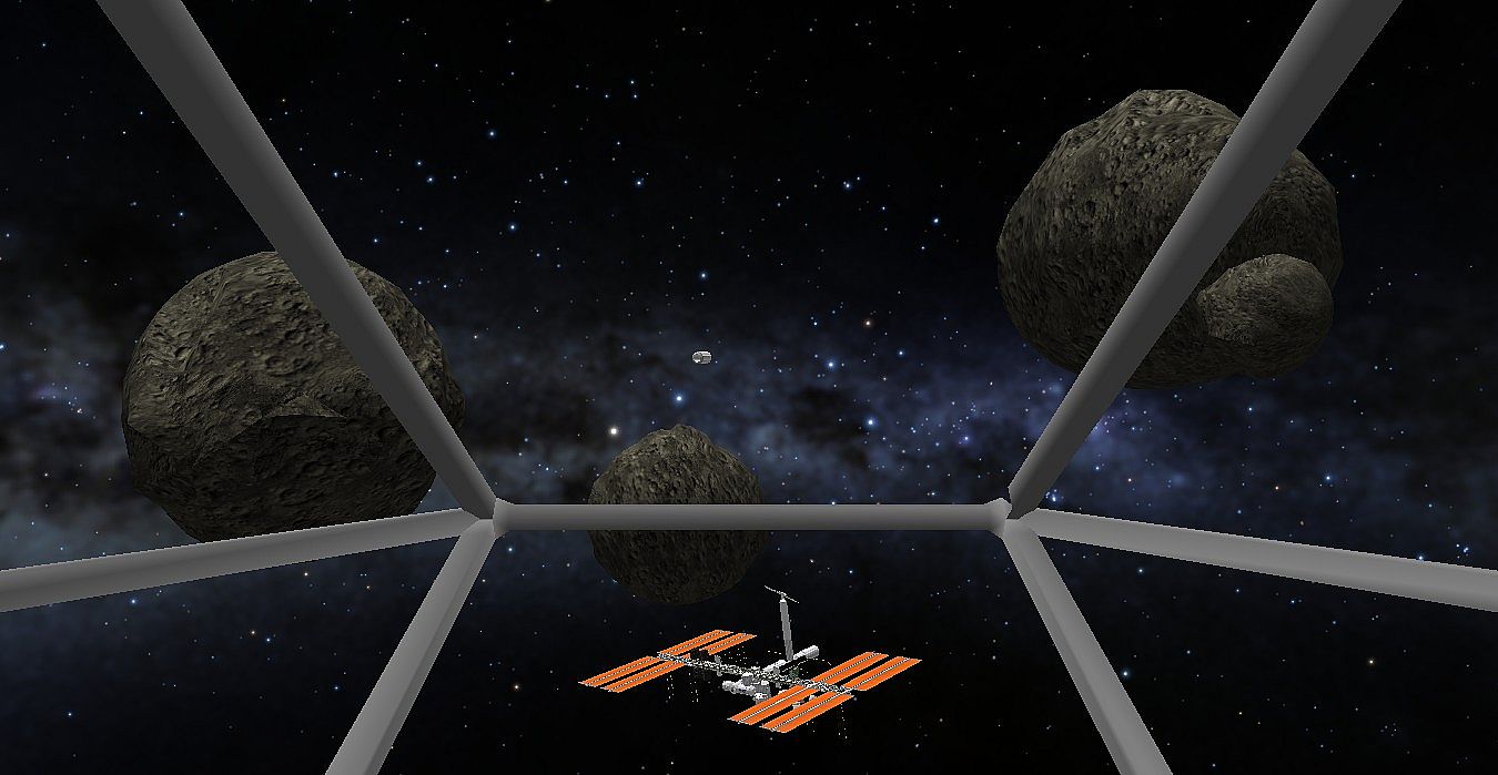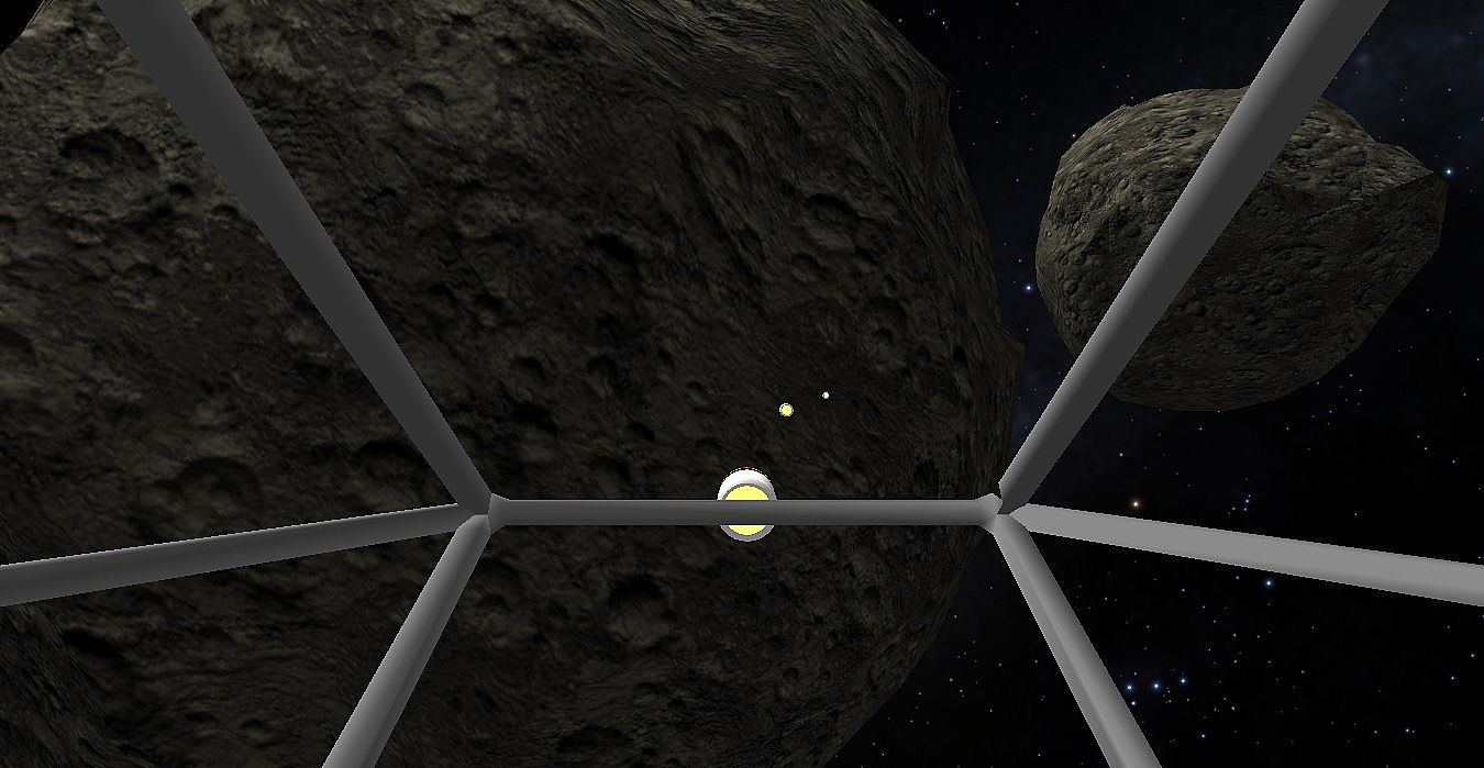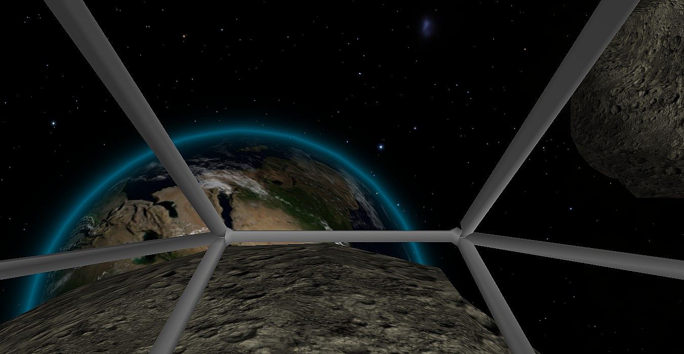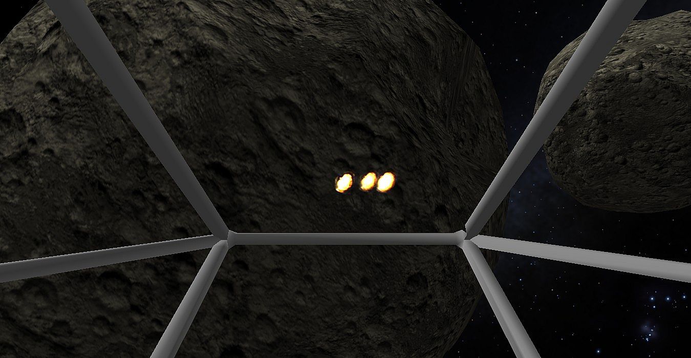 On physics simulation, you pilot a simple spacecraft (like a handcrafted kart) with thrusters, and get experienses of free flight in space.