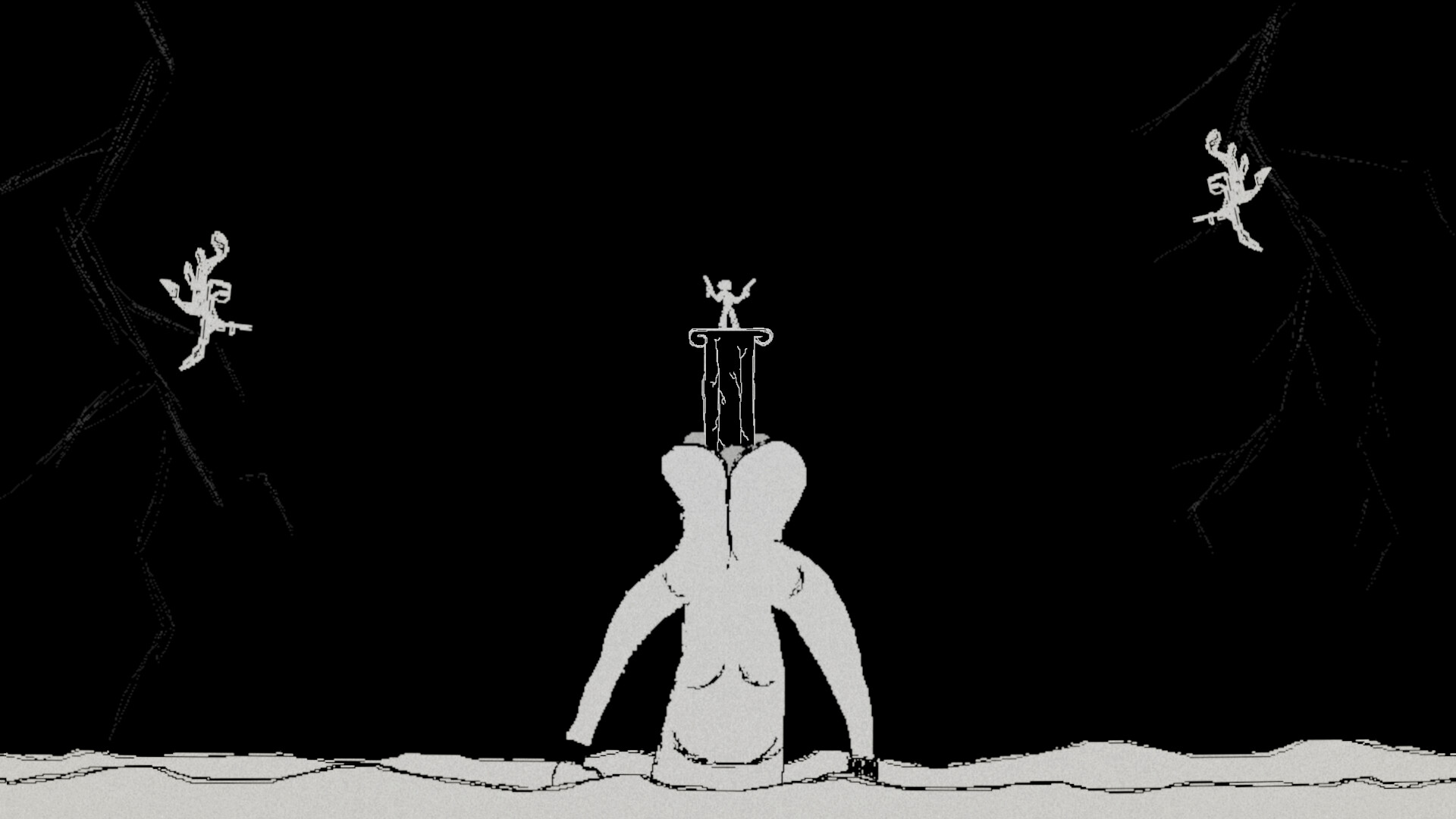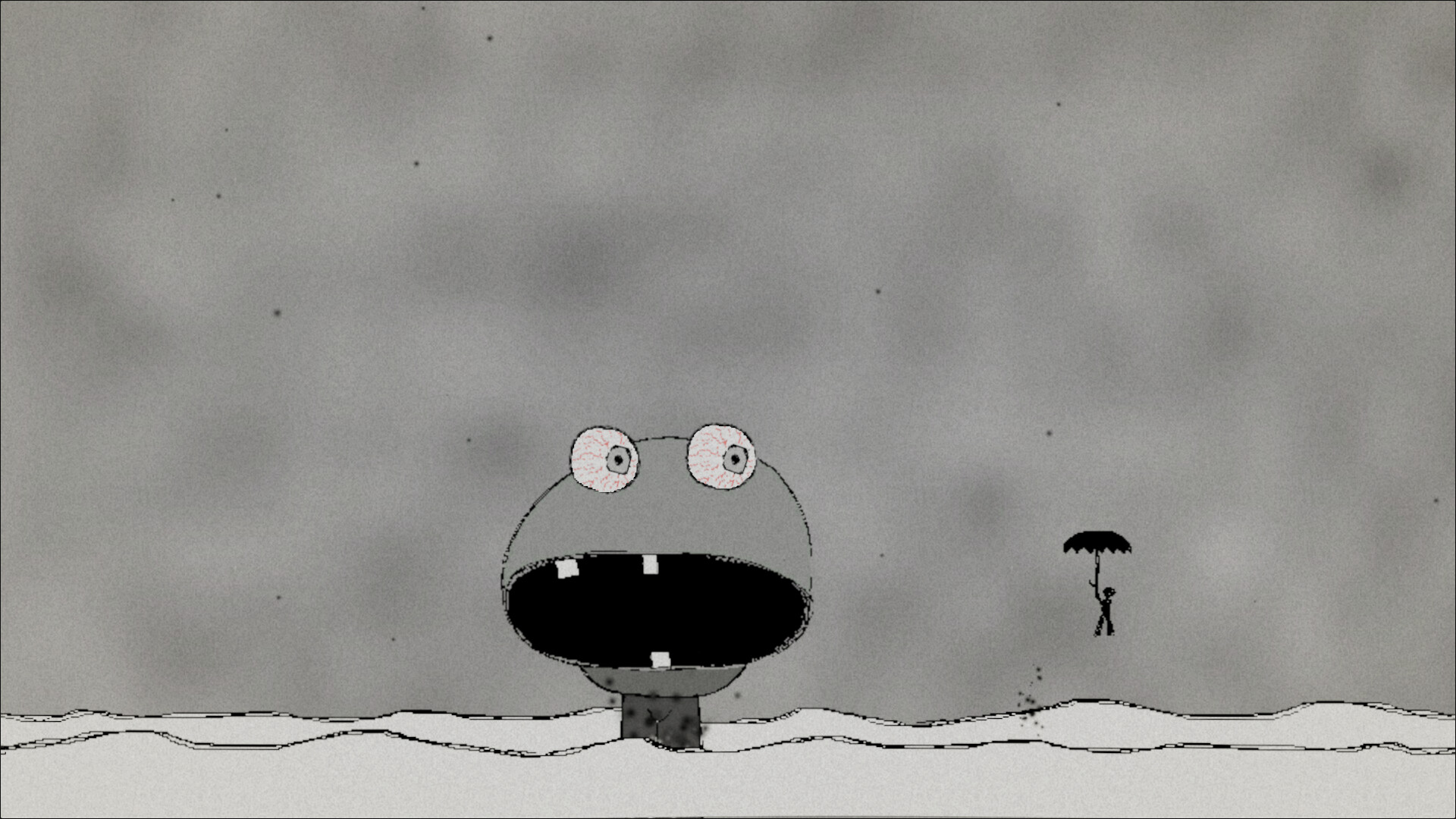 Hand-drawn, black-and-white art with unsettling charm