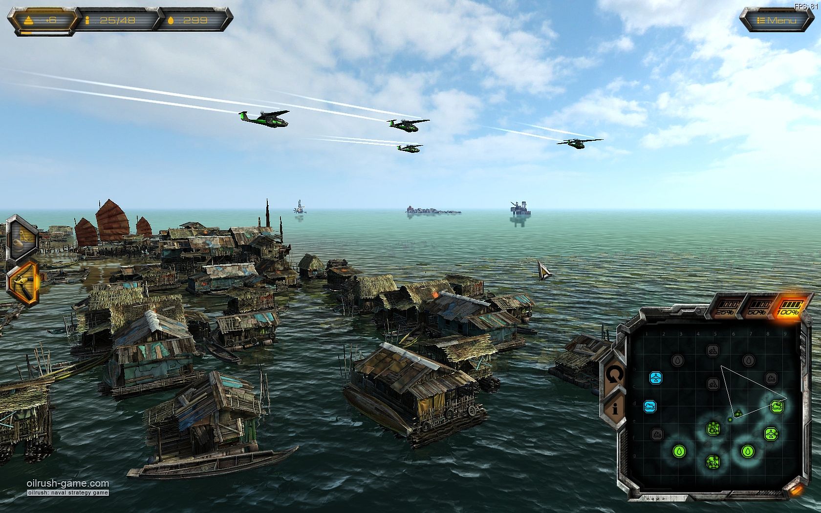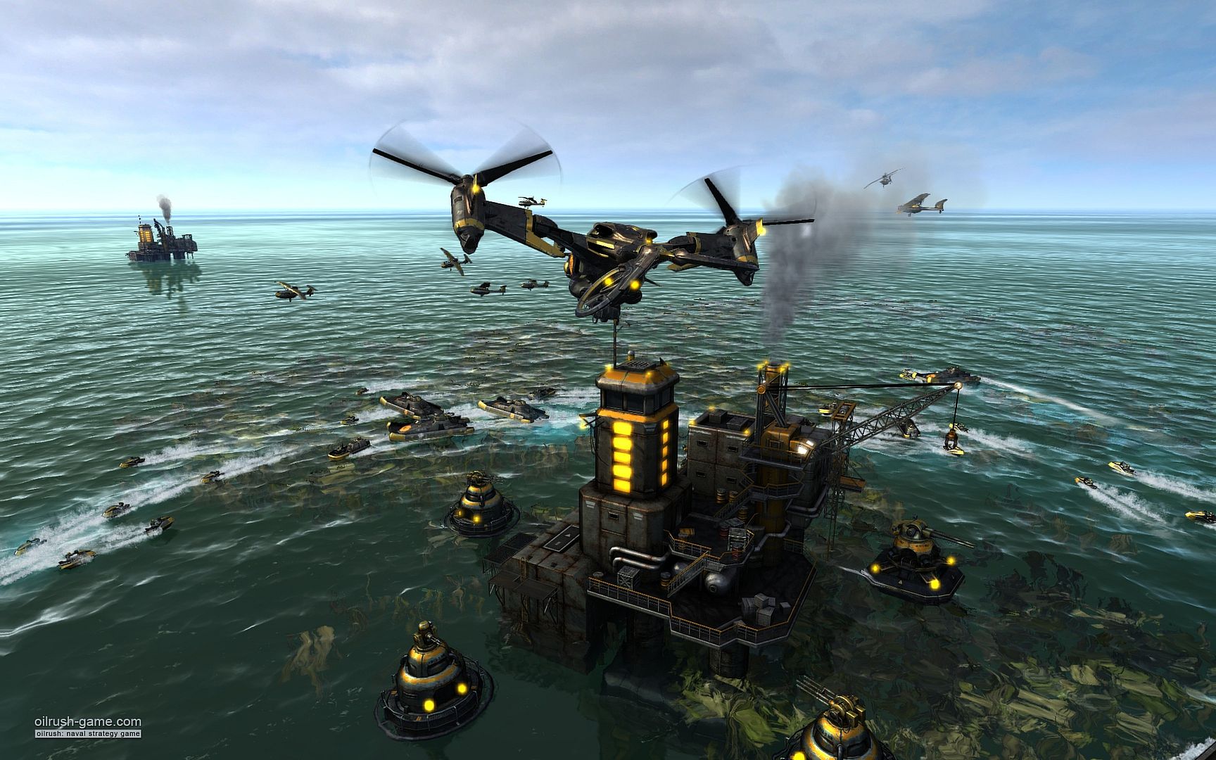 Oil Rush is a naval strategy game that takes place in a world where nuclear war has melted the ice caps, changing the face of the planet forever. Oil Rush offers unique gameplay, avoiding micromanagement of every single unit, while still providing full control over all important aspects of strategy and economy.
