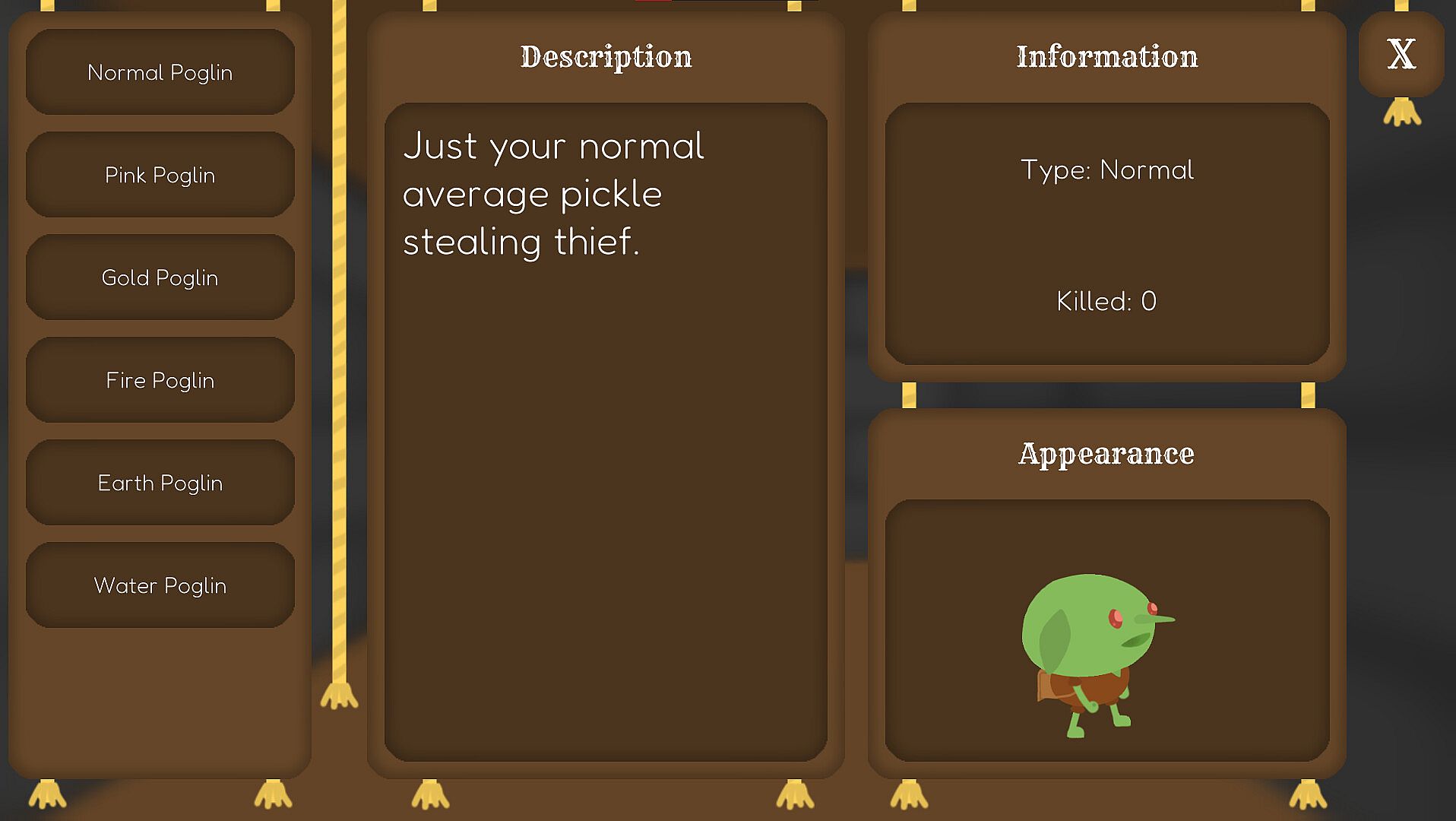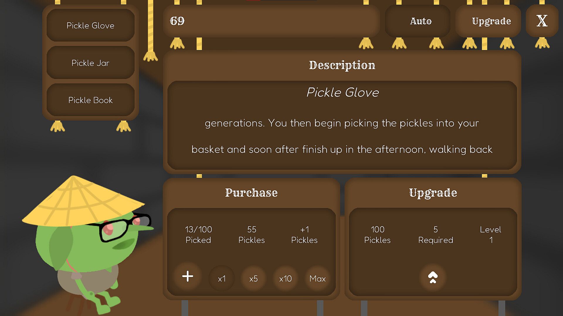 You just click the pickle and get a pickle out of thin air. Not only that, but with your pickles you have the ability to purchase and further enhance your pickle picking empire by buying auto pickles. But watch out! The more pickles you have, the more Poglins eager to come and steal your pickles, so defend and fight back with the purchasing of upgrade pickles.