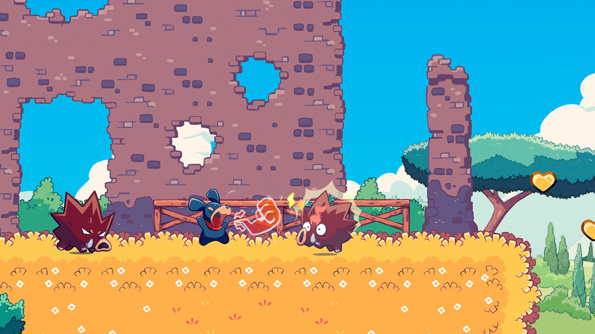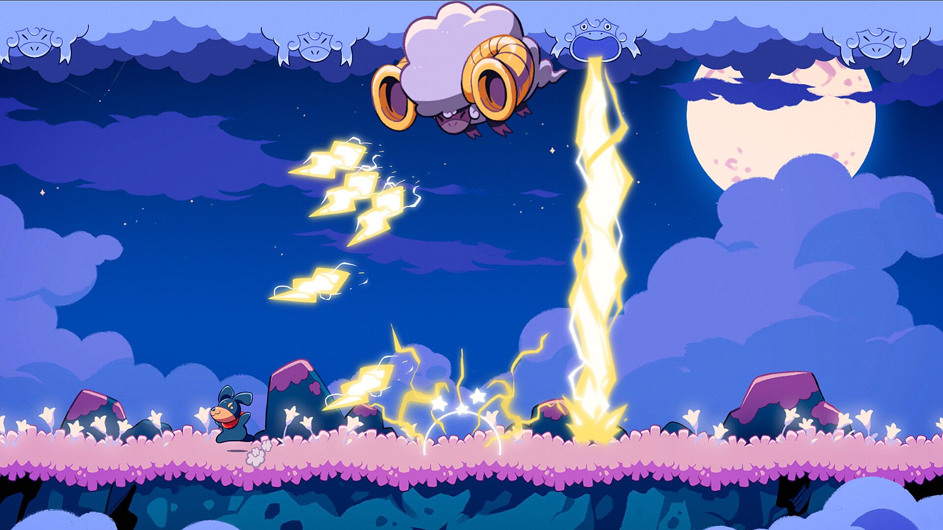 Pinni uses powerful barks to stun and parry attacks from the creatures who have been driven wild by the endless night and use his Bark Jump to scale mountains, climb trees, and explore new areas of your strange world.