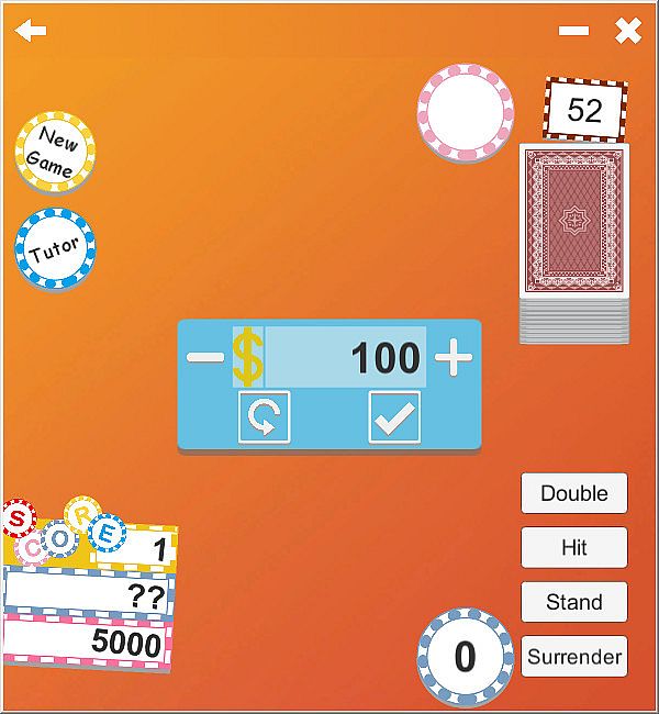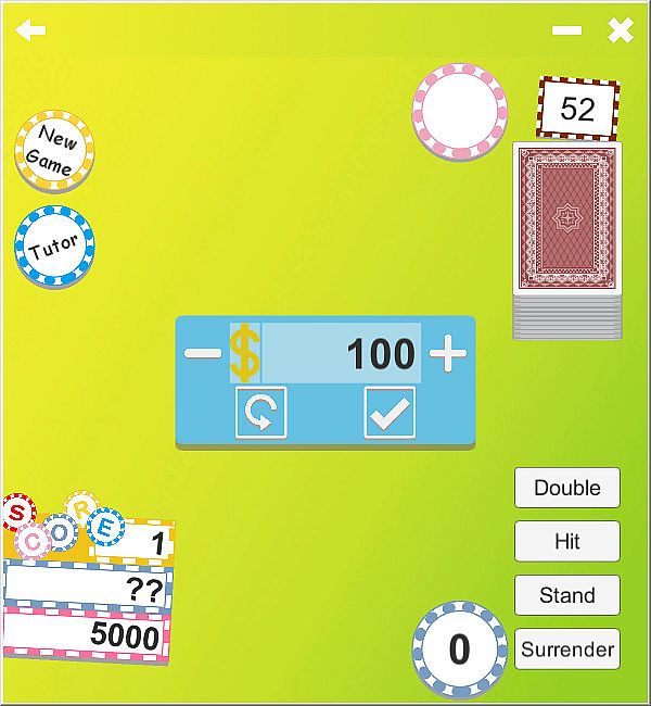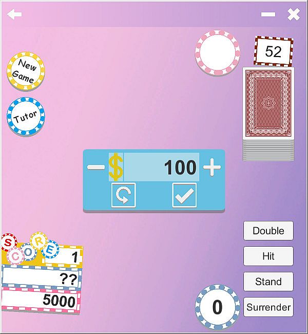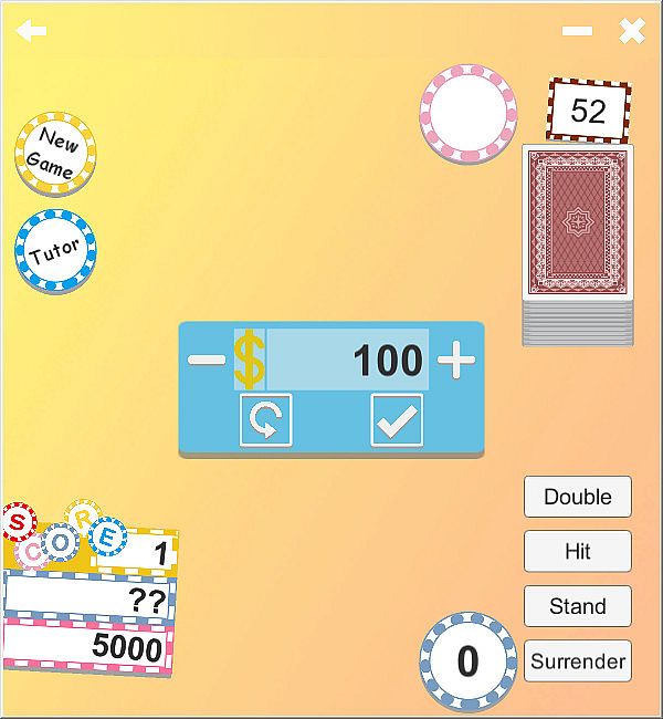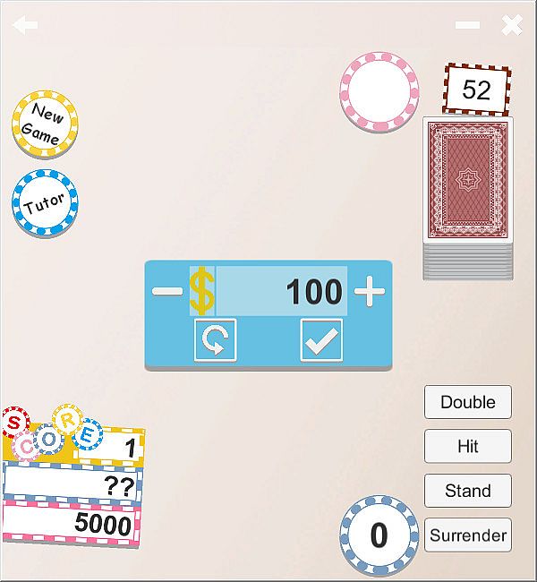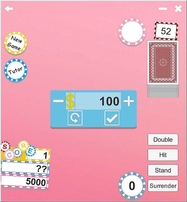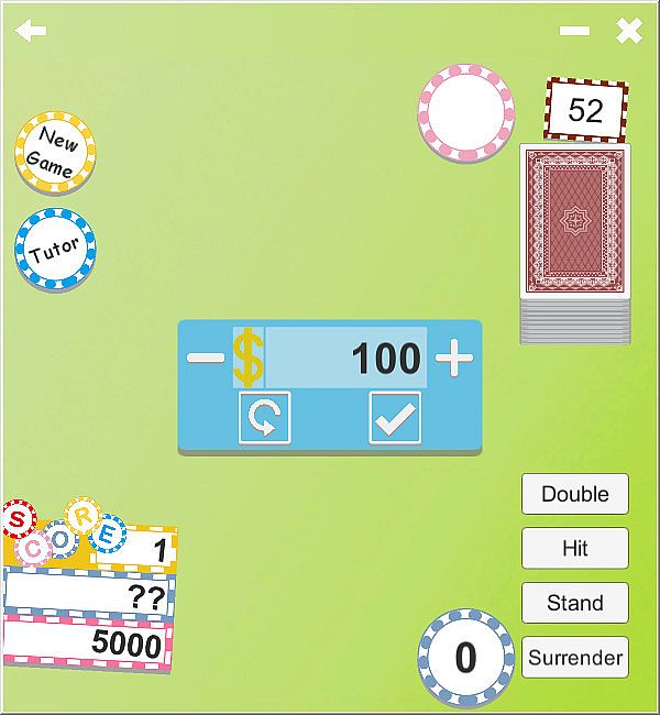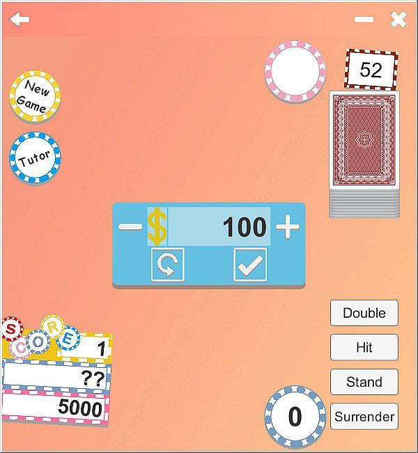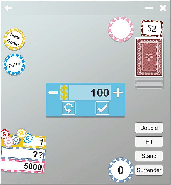 Blackjack is a classic poker game, in which players try to make their hands reach 21 points without exceeding it. In Poker Loafer, players need to win as much chips as possible in 21 rounds of Blackjack. Optional +10 and -10 decks are provided, +10 decks will make hands easier to bust, and -10 decks harder.