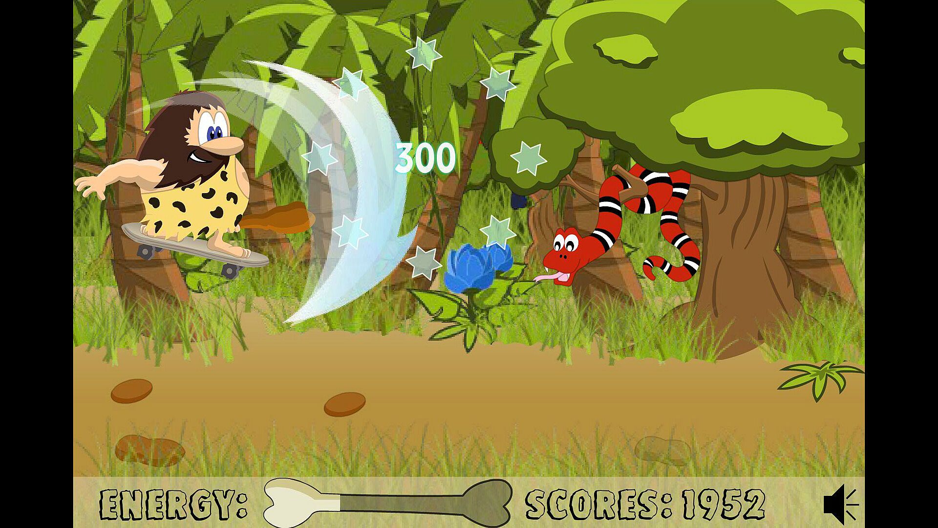 In a 2D Side scrolling adventure, you are a fearless caveman riding through the untamed jungle on your trusty skateboard. As you speed through the wild terrain, be on the lookout for dangerous snakes, venomous spiders, and other hazardous obstacles. But don鈥檛 worry鈥攜ou鈥檙e not defenseless! Armed with your mighty mace, you can smash through threats and clear your path.