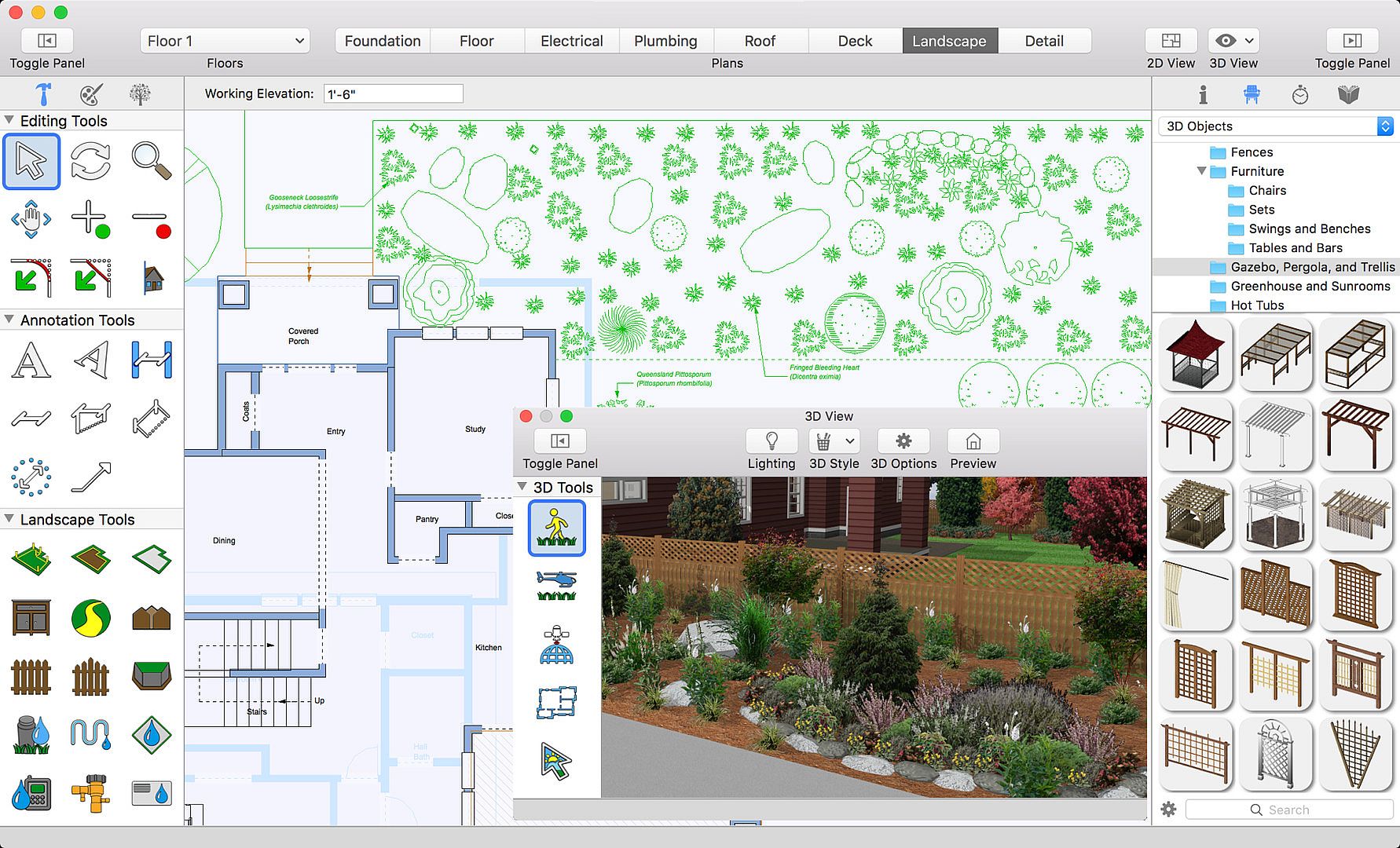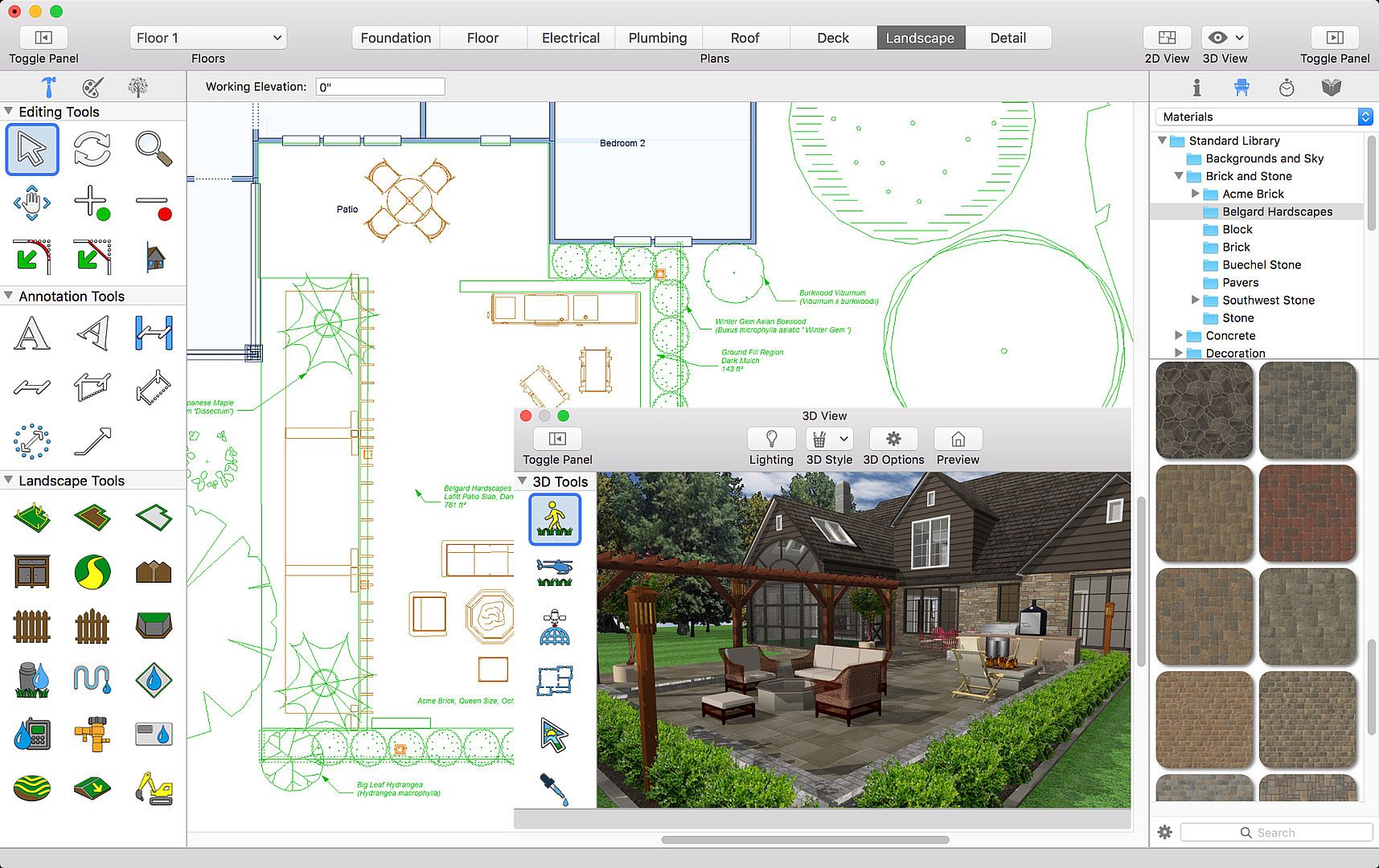 Spruce up your yard or create a whole new landscape concept! Bring your home's exterior features to their full potential with the all-new Landscape Design for Mac Version 19.