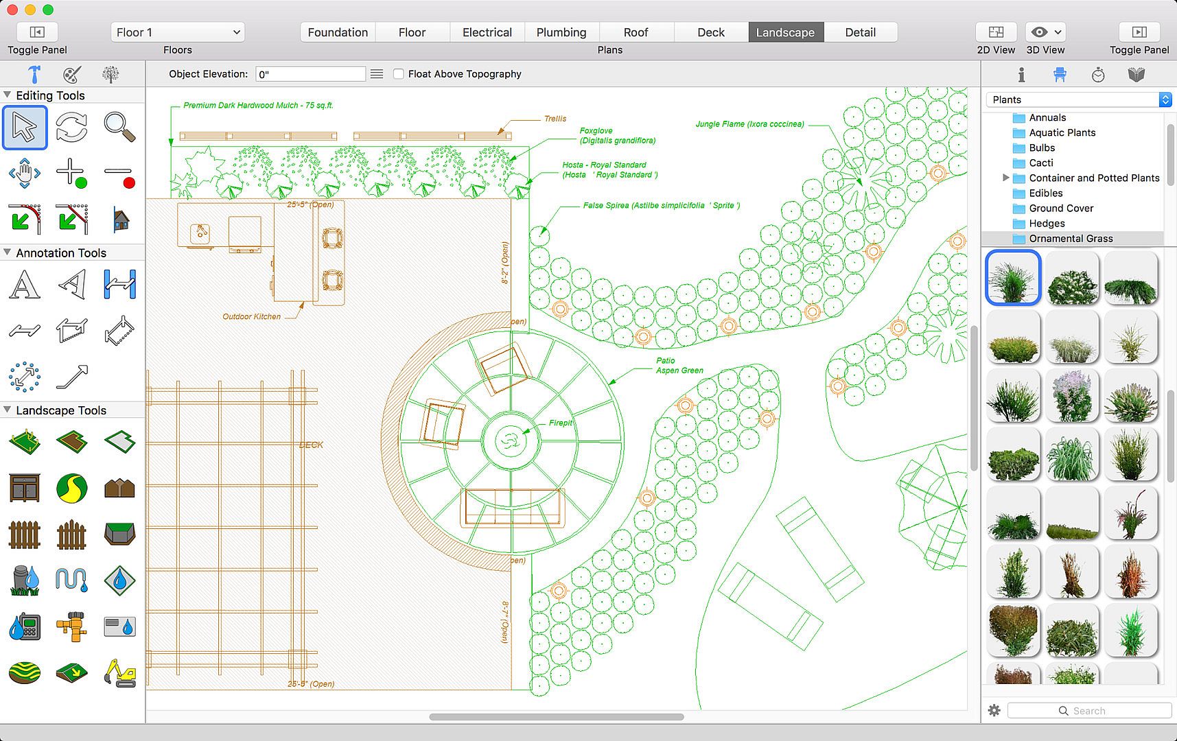 Your landscape makes a lasting first impression. Create the perfect patio, home deck, gazebo or outdoor room design with customized paint, stains and other outdoor finishing touches. Plan every piece to complement your overall landscaping plan. You'll be amazed at what you can do with Landscape Design for Mac.