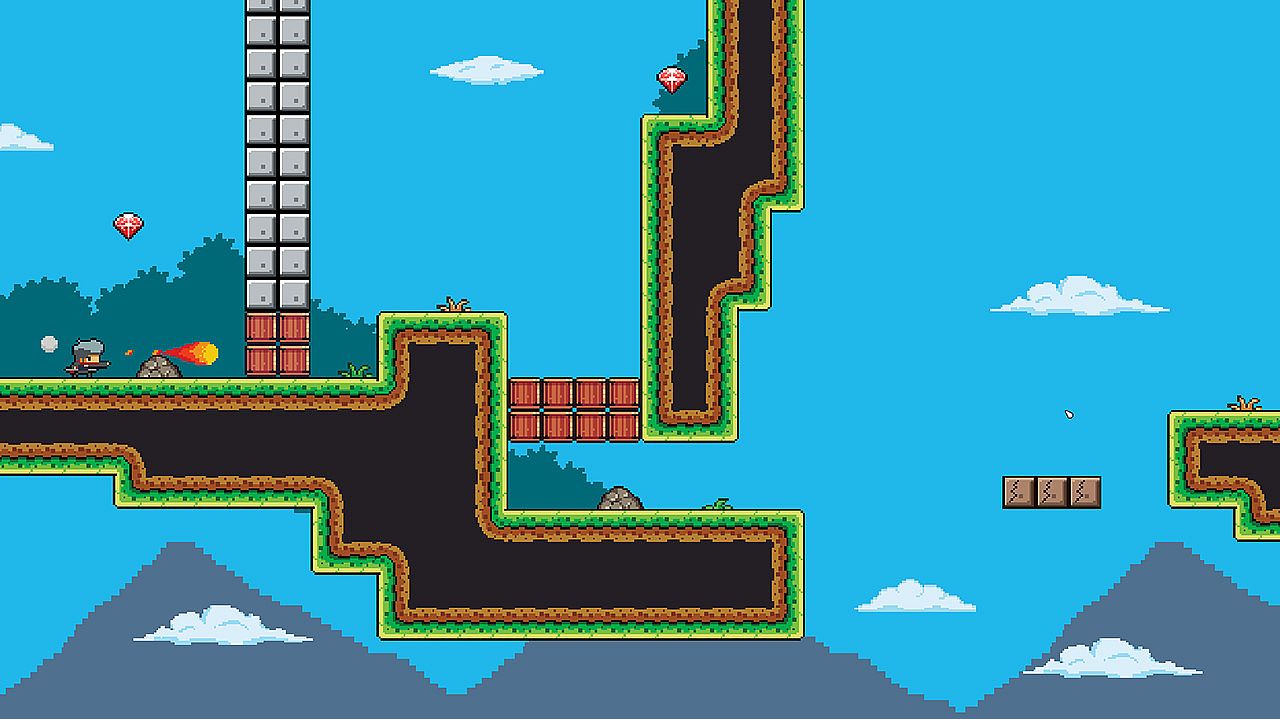 A 2D platformer. Becoming a ninja, casting Flash-Skill to move nimbly about, and dodging.
