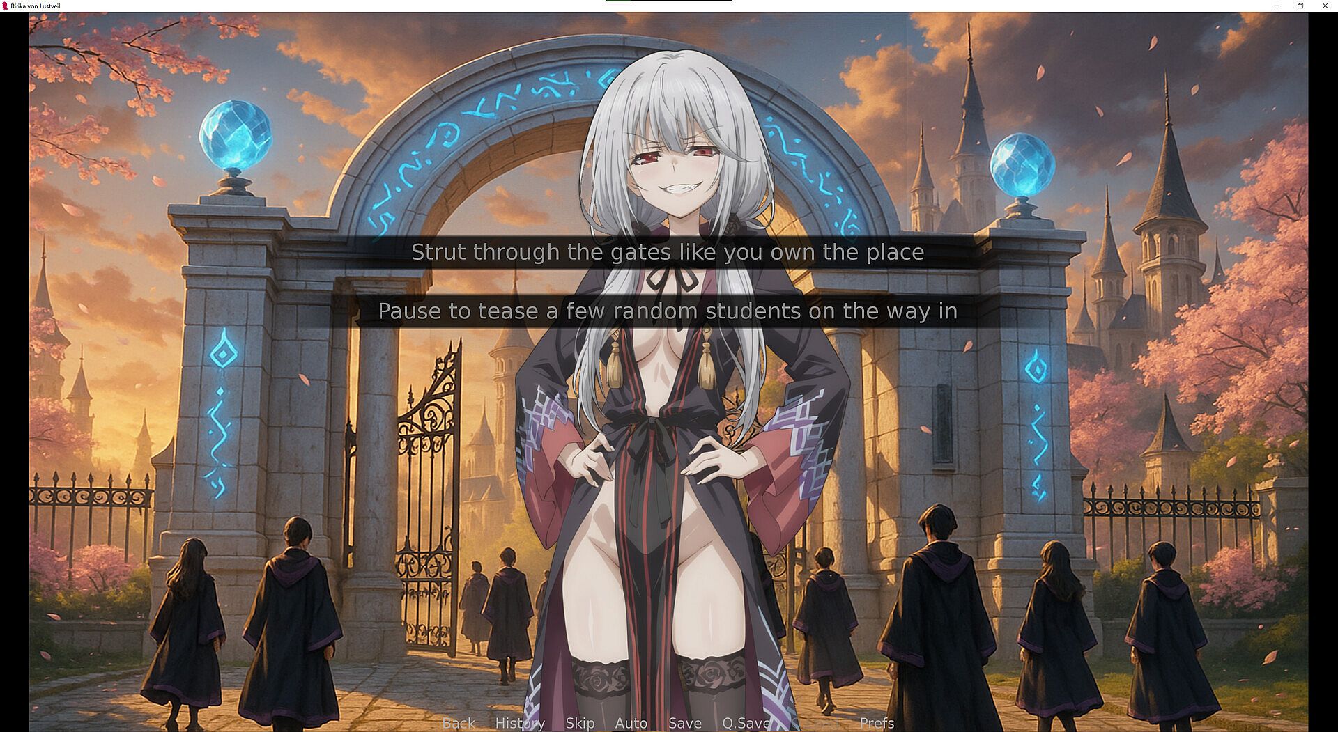You play as Ririka, a mage whose power grows the more she is worshipped. Why study for exams when you can force the top students, the faculty, and even the Headmaster to pledge their undying loyalty to you?.