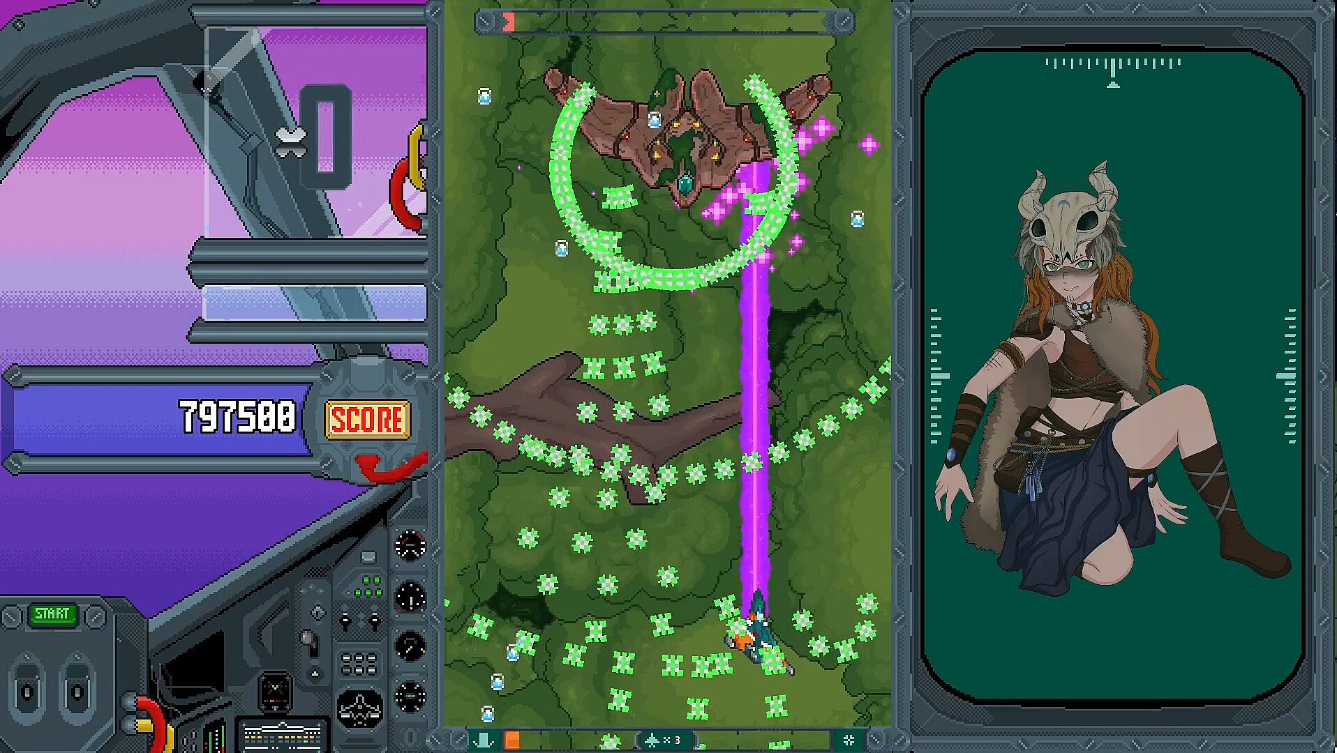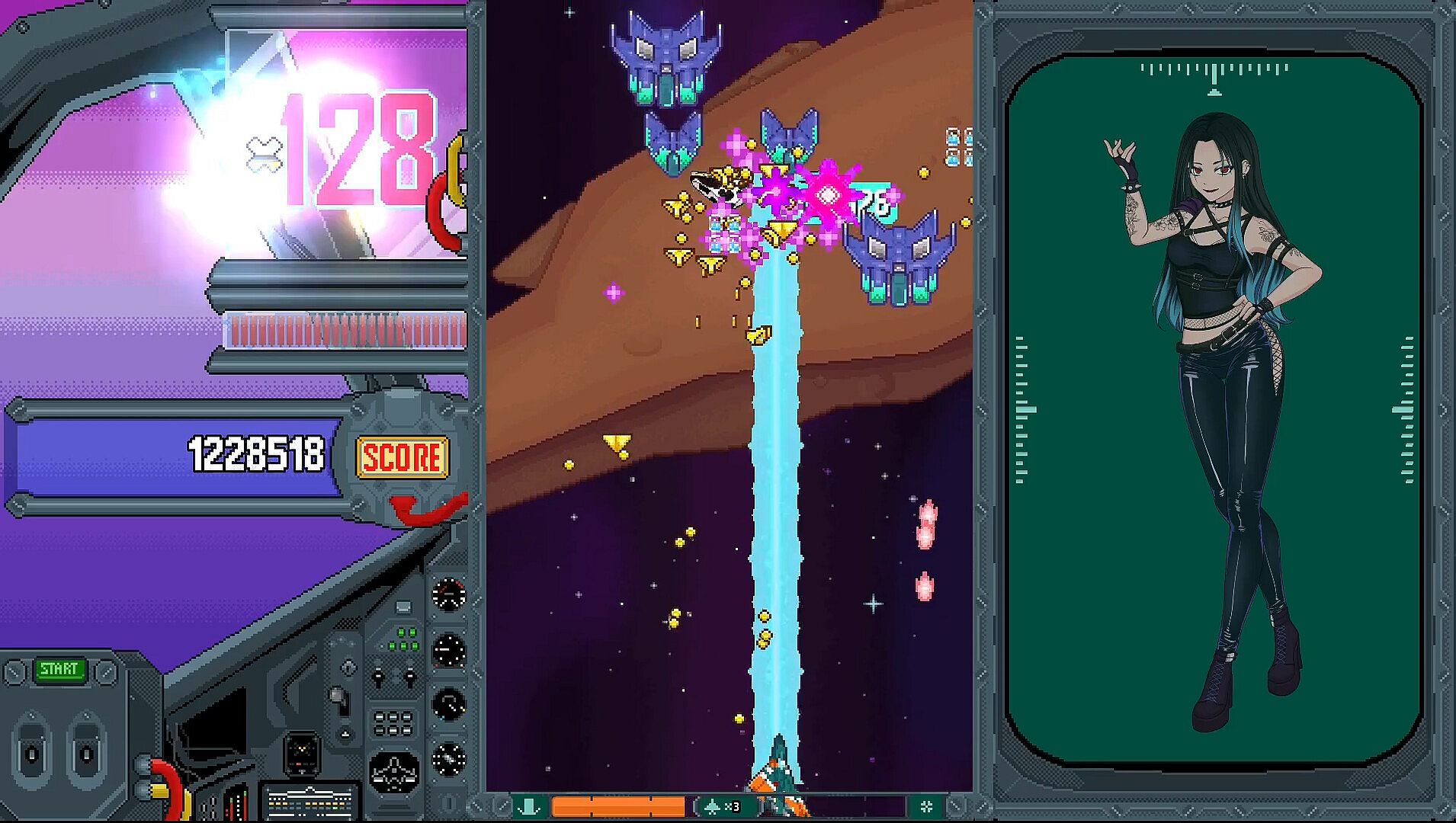 The Ultimate Evil has stolen the hearts of the most powerful women across time and space. Earn SCORE by destroying their ships and building COMBO before unleashing the ROPU BARASTU BEAM. Impress each girl with enough SCORE TO SCORE a special scene with her.