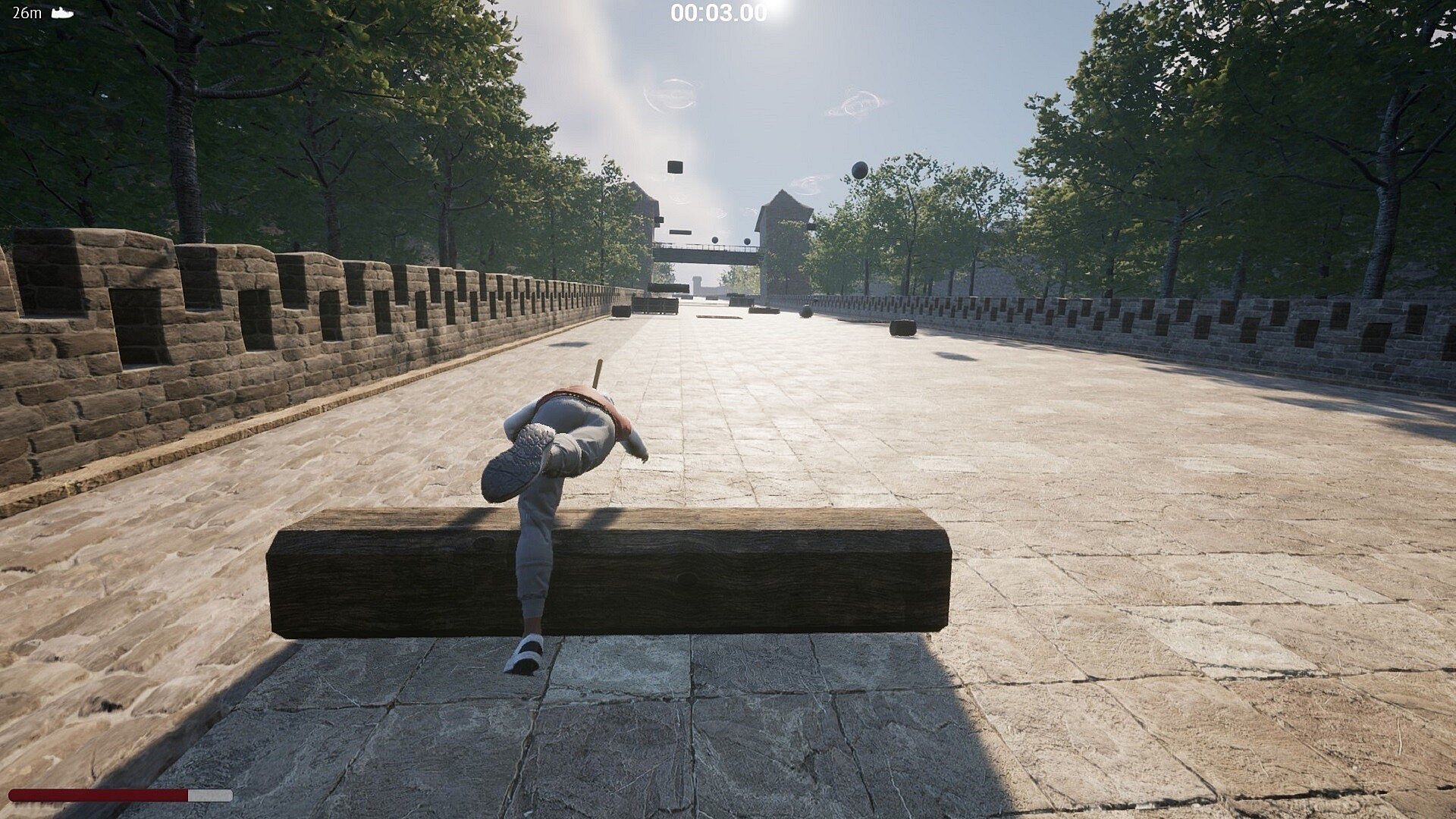 But beware! This isn’t just a simple running game – objects constantly fall from above and roll towards you. You need to skillfully dodge them, as getting hit too often means you'll have to restart. Your survival depends on your health bar, which shows how many hits you can still take.