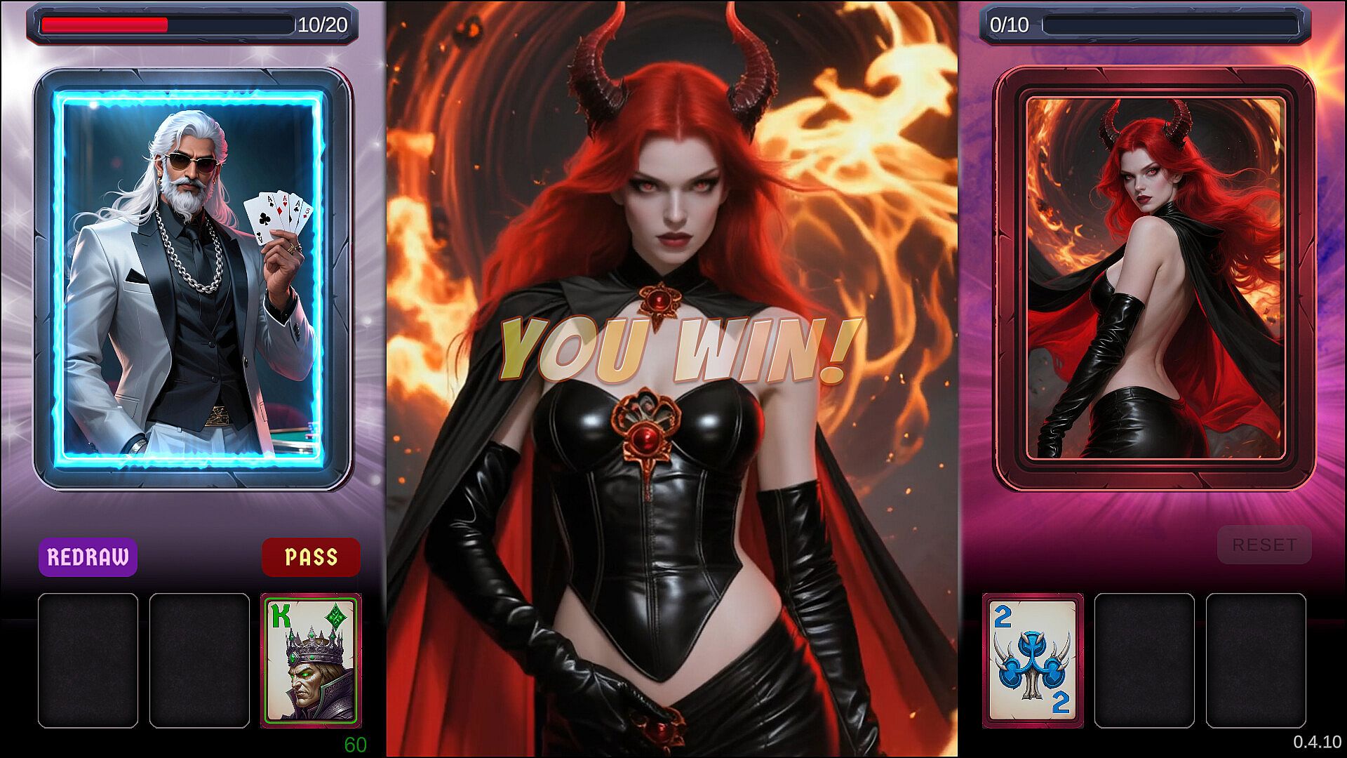 A casual horror themed card game of strategy and card battler, where you can unlock some of the hottest female demons in the underworld! Unlock their naughty skins, their lewd scenes, or even their explicit animated interactions with you! Over 70 drop-dead gorgeous succubus to unlock and hundreds of wretched creatures and demons to beat!