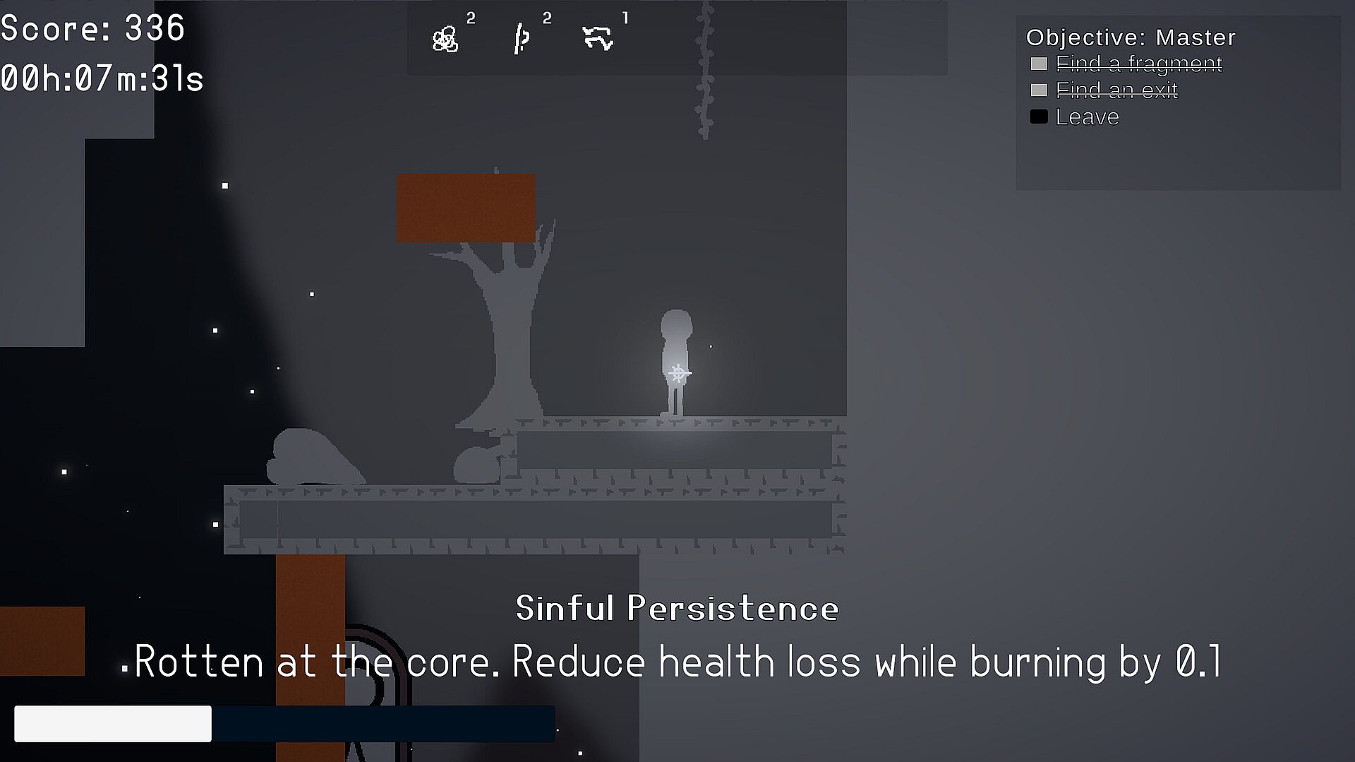 After completing 3 objectives, you will be transported into the realm of knowledge. Here fragments of unknown origin can be acquired and stacked to give you various abilities ranging from increased fire resistance, to a larger explosive radius, increased speed, and many other incredible power ups.