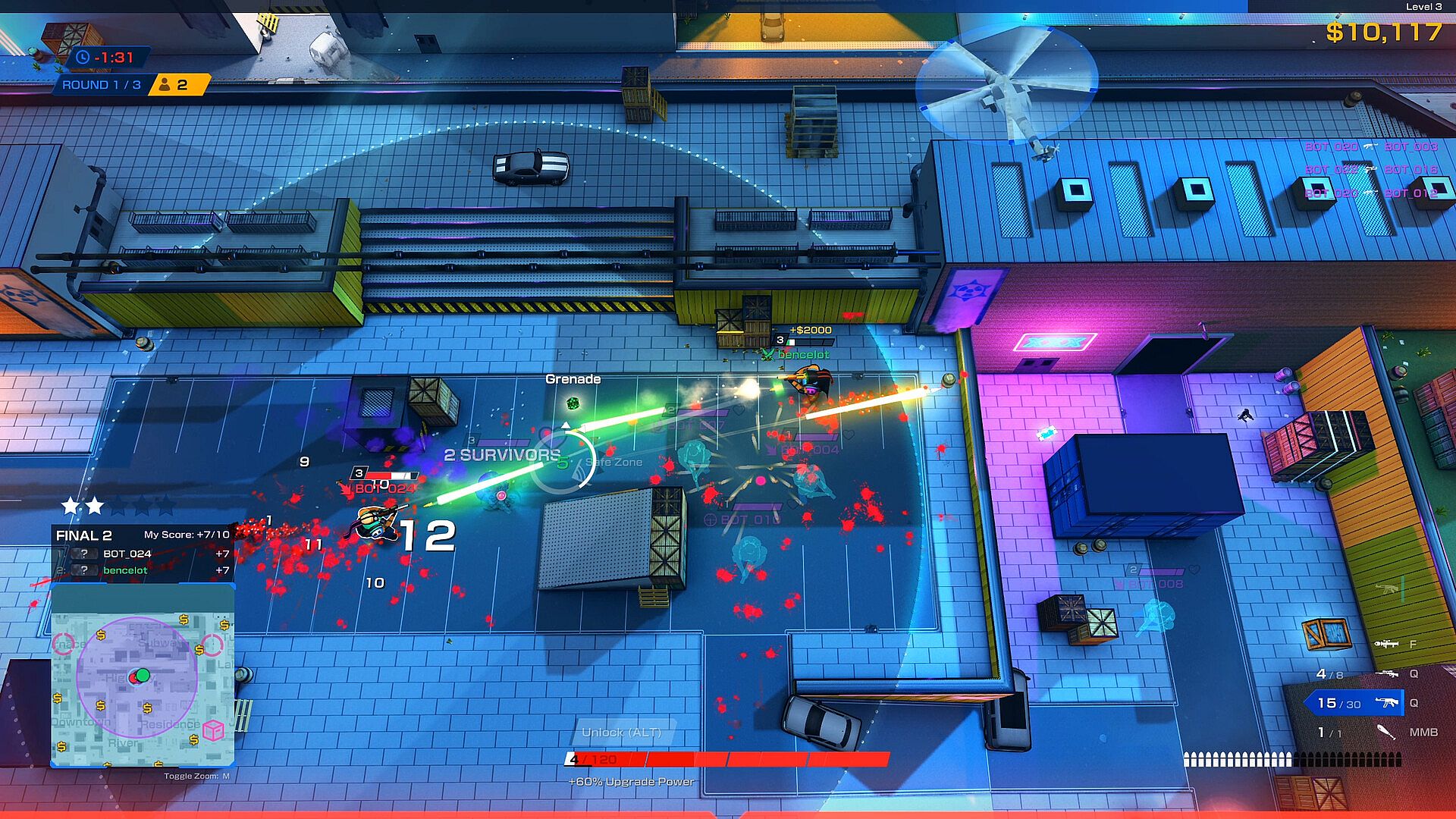 But remember, the circle is shrinking and death will set you back a lot. You have to balance risk with reward to level up as much as possible while still surviving to the final showdown.