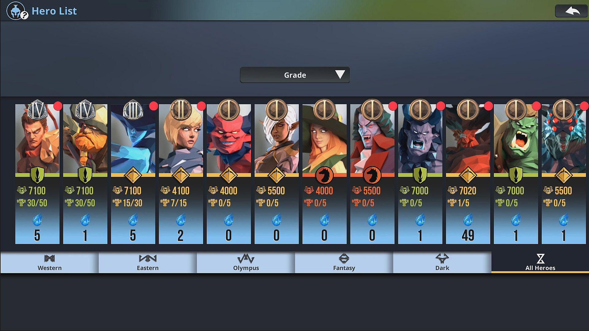 - Various Heroes of 5 different unions: Eastern, Western, Olympus, Fantasy, and Dark!