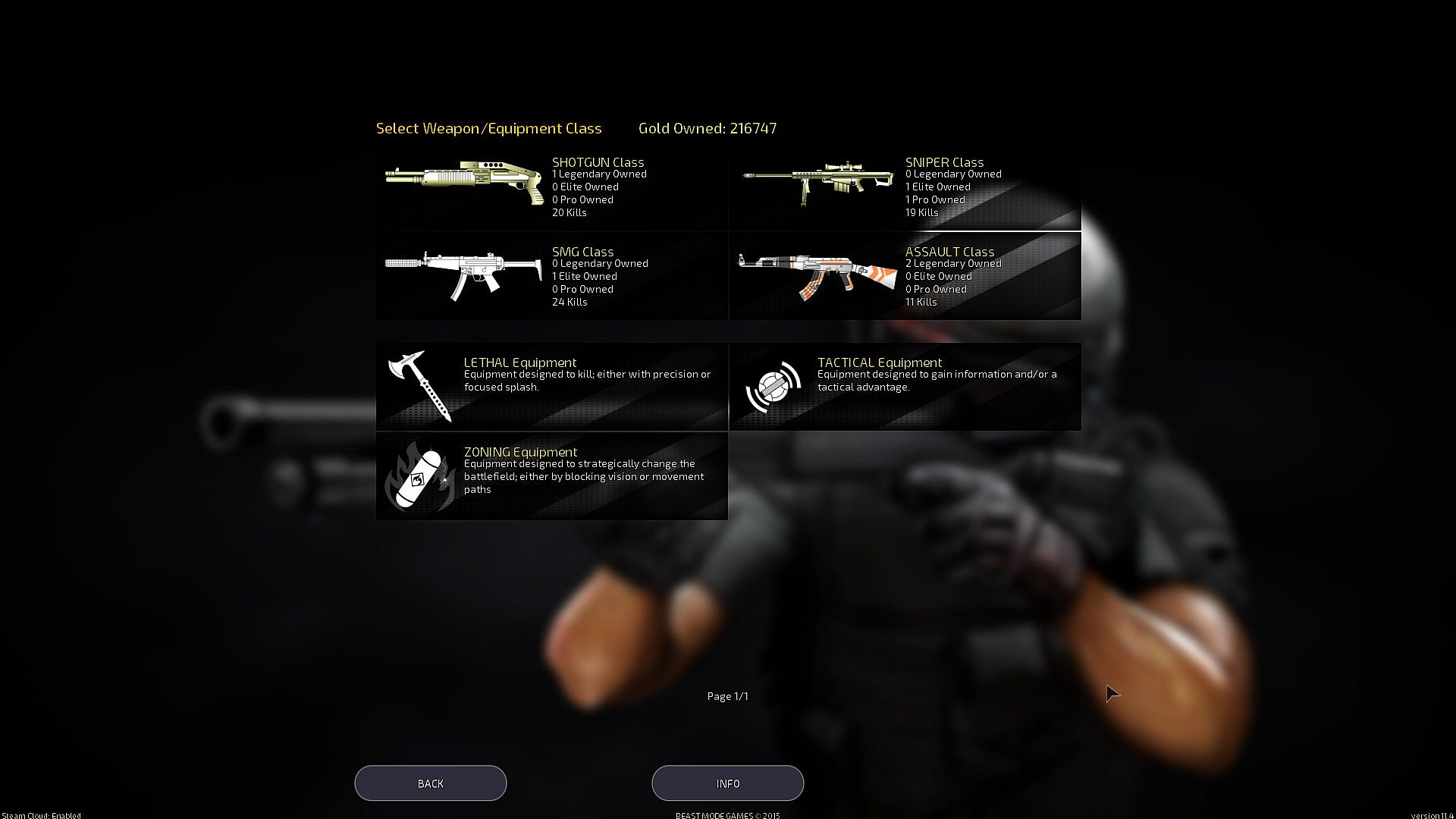 - 5 main classes: Sniper, Shotgun, Assault, SMG, Shield