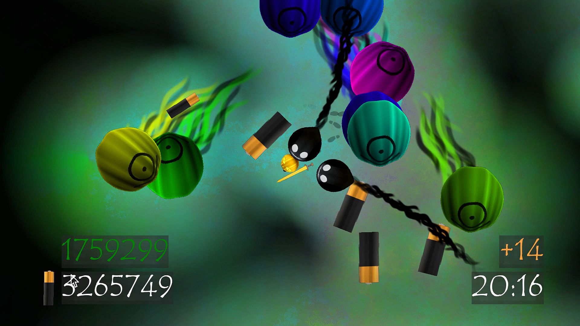 Survive for as long as possible by collecting batteries, which are dropped by enemies!