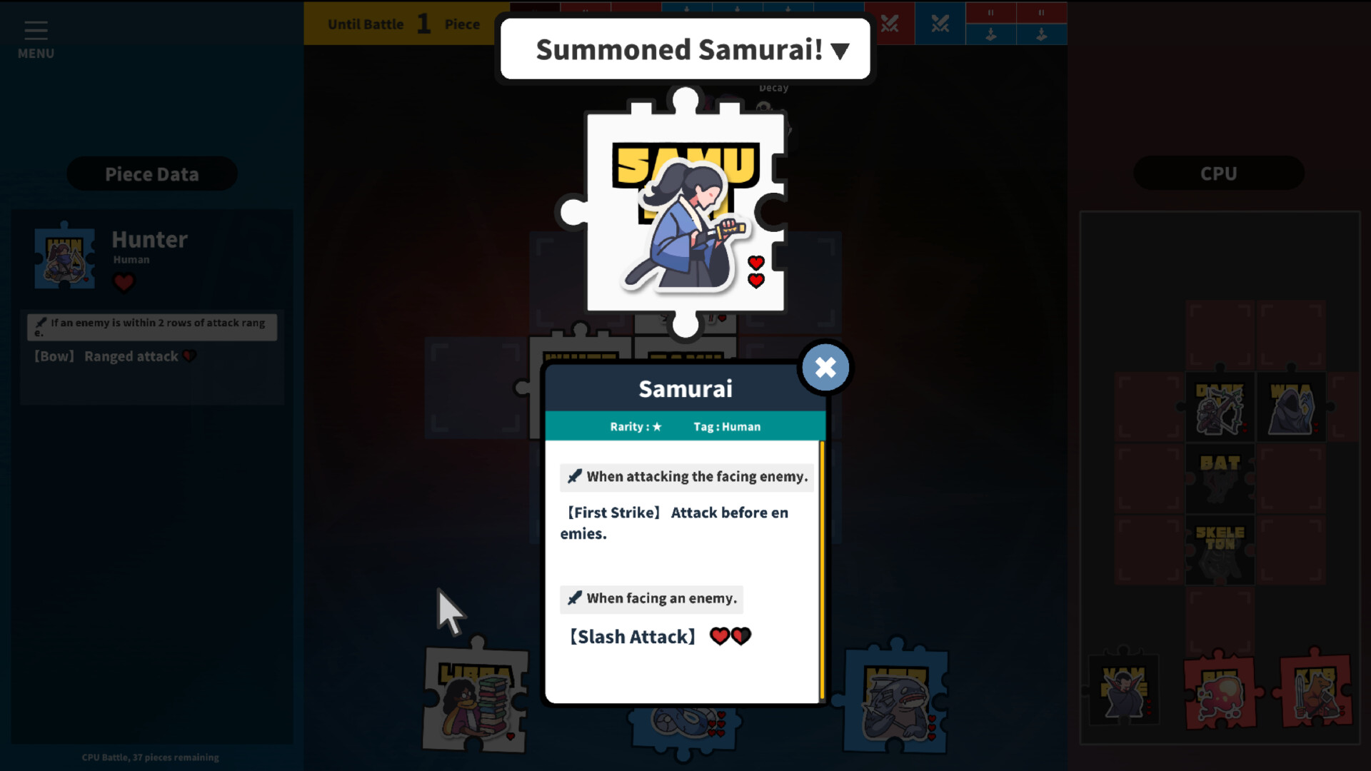The more tabs a piece has, the harder it is to summon — but the stronger it becomes.